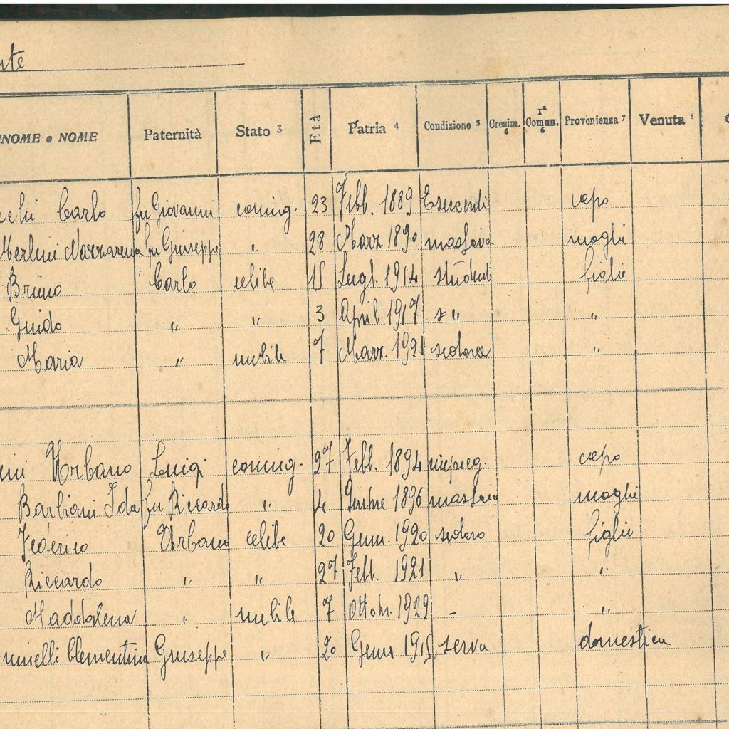 La famiglia Fellini si trasferì poi in via Dante, così come riportato, sempre grazie all’Archivio Storico Diocesano, dall’estratto del Registro delle Anime, presumibilmente del 1930, in cui è elencata l’intera famiglia Fellini dal padre Urbano alla mamma Ida ai fratelli Riccardo, Maddalena, alla domestica Clementina Pasquinelli.