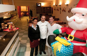 Per organizzare la vigilia di Natale, Calafiore ha fatto le cose per bene. Si è presentato al parroco di San Gaudenzo, don Aldo Amati, e gli ha esposto l’idea. “Ci è sembrata subito una bella e buona idea – confessa don Amati – e così la parrocchia si è attivata per organizzare la serata”. San Gaudenzo – insieme alle altre parrocchie della Zona pastorale: Crocifisso e San Raffaele – si è messa all’opera, specie con il coordinamento della Caritas parrocchiale, per rintracciare le persone in condizioni di disagio da invitare alla cena natalizia. Alla Pizzeria Piccinelli, la sera della vigilia di Natale, saranno un centinaio. I volontari della parrocchia daranno una mano nel servizio e nell’animazione della serata. Al resto ci pensa Michele Calafiore, la moglie Monika, il pizzaiolo Paolo e la cameriera Illem. Il menù è di quelli importanti: all’antipasto misto, seguiranno i tortellini in brodo di cappone, l’arista di maiale al forno con salsa alla bavarese e patate arrosto. Chiuderà la cena il tradizionale panettone, accompagnato da acqua, vino, e spumante. “Un pranzetto” si schernisce Calafiore.