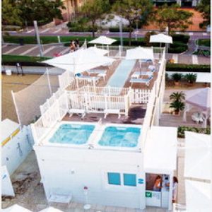 Una spiaggia viva anche d’inverno. Con brandine pronte per chi vuole rosolarsi un po’, appena il sole torna a fare capolino tra le nuvole; idromassaggi all’aria aperta e spa con molteplici sevizi per dispensare coccole ai clienti dei mesi freddi.