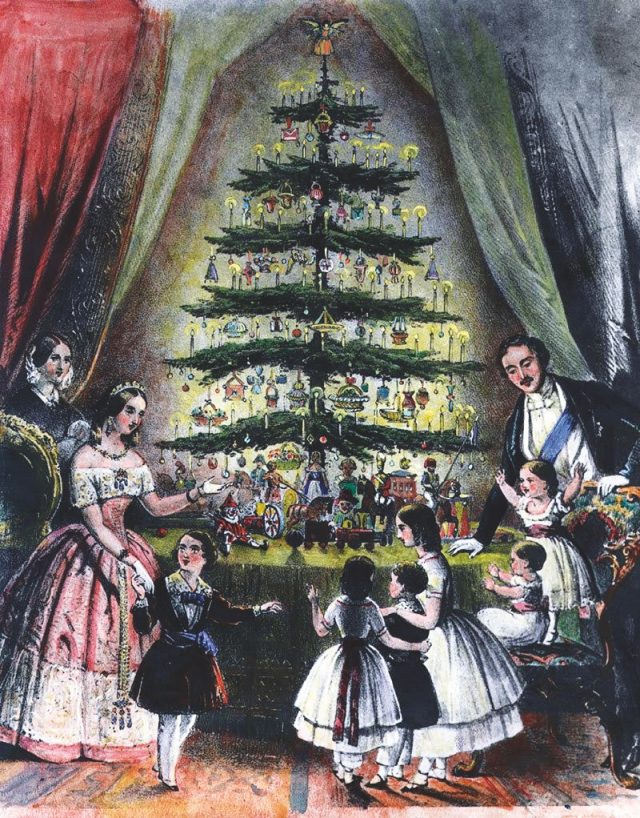 Successivamente, i rami del nostro albero, che a poco a poco si era trasferito dalle piazze alle case delle famiglie nobiliari, si arricchirono di candele e dolciumi che ne sottolineavano il significato luminoso e i doni di grazia che esso portava al genere umano. A questo proposito si conserva ancora la memoria della realizzazione del Presepe all’ombra dell’Albero di Natale, ciò che rendeva ancora più chiaro il rapporto esistente tra i due manufatti: l’uno origine di un percorso che l’altro proclamava destinato a trasfigurare la nostra natura umana, entrambi avvolti da una luce senza tramonto.