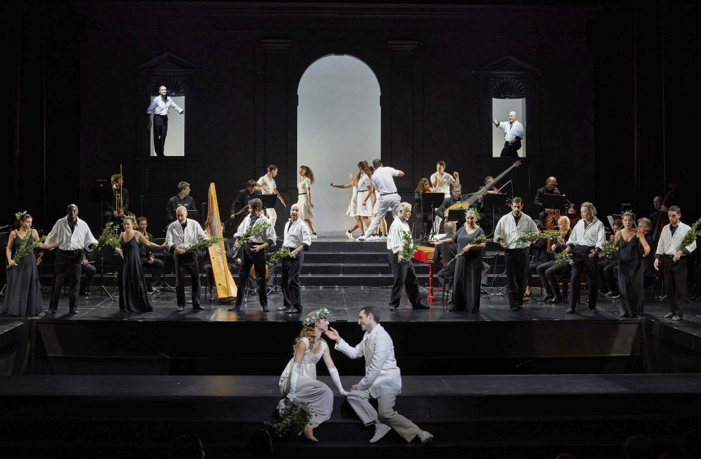 Nello spettacolo ravennate, la sorpresa arriva al momento della conclusione, perché direttore e regista, insieme, hanno concordato di non optare per alcuno dei due finali canonici: quello tragico, in cui Orfeo viene ucciso dalle Baccanti (forse utilizzato in occasione della prima a Palazzo Ducale di Mantova), e quello lieto, con l’intervento di Apollo, che discende dal cielo per salvarlo (probabilmente adottato nella seconda esecuzione di una settimana dopo). Il quinto atto s’interrompe così con la sinfonia che avrebbe dovuto precedere la discesa del deus ex machina – una soluzione cui oggi, del resto, è molto difficile dar credito – e lascia il finale aperto, come già Luciano Berio auspicava fin dai primi anni ottanta.