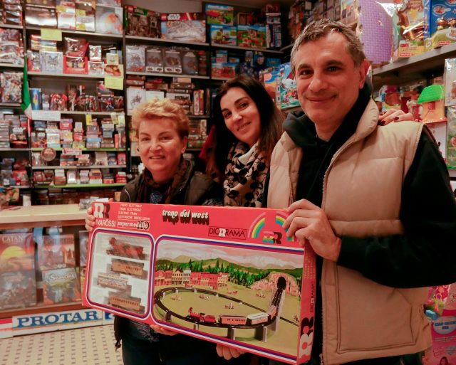 Adesso capisco Pinocchio e la tentazione del Paese dei balocchi. Entrare all’Emporio Brigliadori, lo storico negozio di giocattoli di Rimini è, per me come per intere generazioni di riminesi, come metter piede nel Paese delle tentazioni collodiane. Arrivo alle 11.00 del primo venerdì dopo Natale, ci dovrebbe essere un po’ di calma, vista l’abbuffata dei regali – e invece gli avventori non mancano. C’è un signore che si fa spiegare tutto sul tappetto/campo da calcio di Subbuteo che, ho scoperto, cambia in base alla “vecchiaia” delle pedine che si mettono sul campo da gioco; c’è una bimba che cerca un minipony con la criniera viola e poi ci sono io che chiedo alla signora Luciana di quella barbie gigante del 1994 che è lì in bella vista e che è stata la protagonista della mia letterina a babbo natale per almeno tre anni di fila. Lei, la signora Luciana è Luciana Panfili, moglie di Giorgio Brigliadori e memoria storica dell’Emporio Brigliadori.