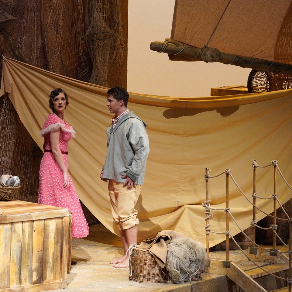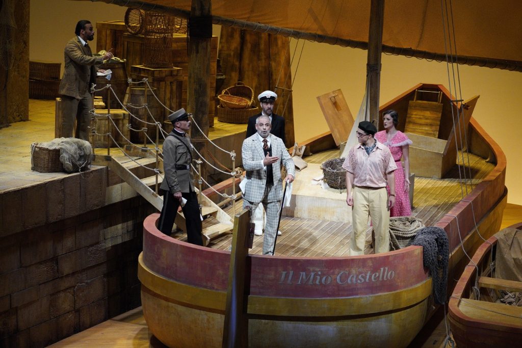 PESARO, 7 agosto 2021 – Una cornice genericamente retrò, con alcune strizzatine d’occhio al cinema italiano. È ambientato su una barca Il signor Bruschino di due esordienti a Pesaro, la coppia Barbe & Doucet: scenografo e costumista il primo, regista il secondo. Una scelta un po’ improbabile, che offre il pretesto per qualche gag di troppo: dall’atteggiamento sopra le righe della protagonista femminile agli abiti di Bruschino, conciato come certi personaggi della commedia neorealista, mentre Gaudenzio sembra ricalcato su Nino Manfredi (indizio inequivocabile: il caffè che sorseggia) protagonista di alcuni film degli anni settanta. Un omaggio a una stagione irripetibile del nostro cinema, tanto ammirata soprattutto all’estero? Forse, ma il rischio è quello di scivolare in un accademismo citazionista neanche troppo comico, che non rende giustizia a questo piccolo gioiello, male accolto – per certe sue ardite sperimentazioni – al debutto nel 1813.