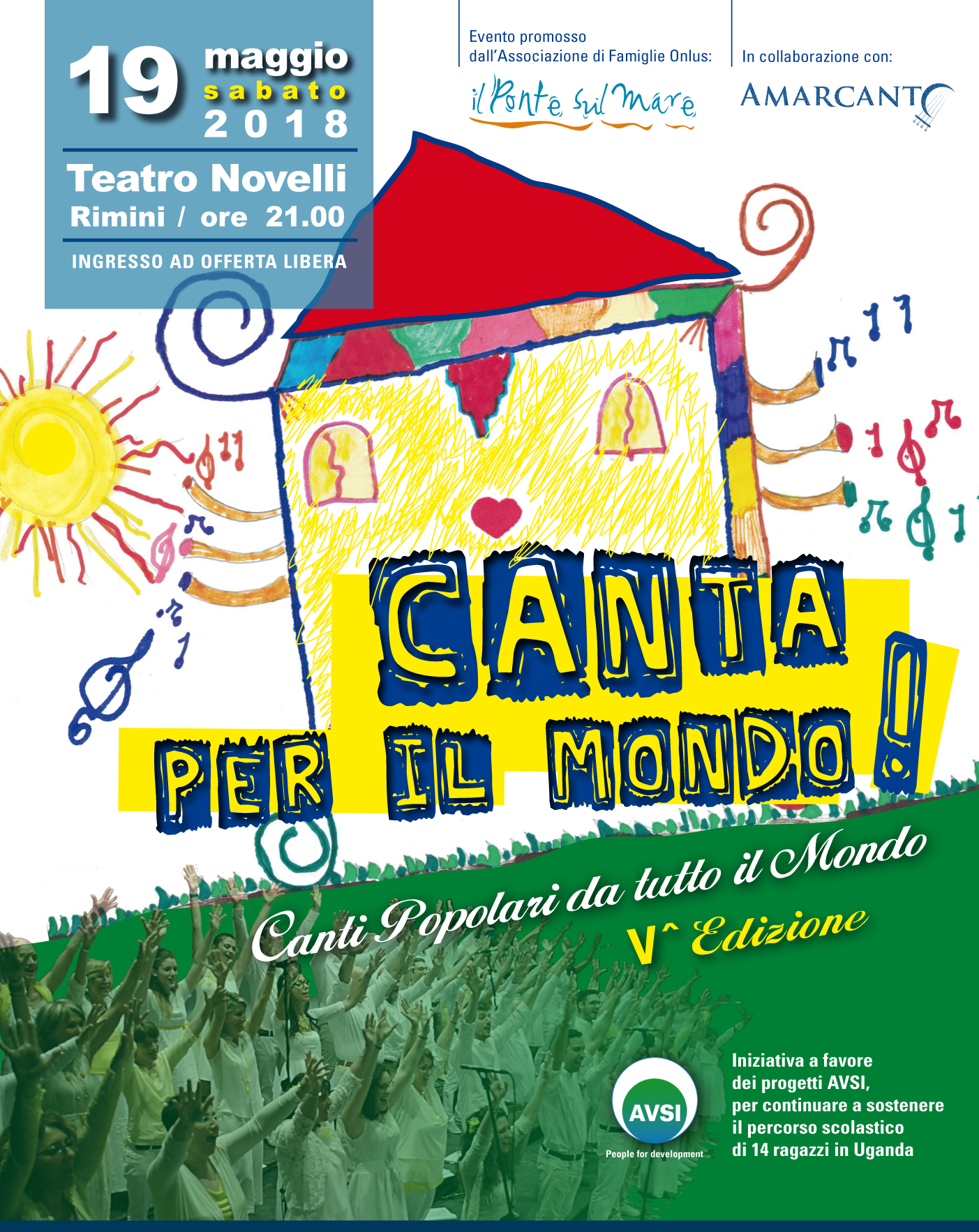 Dare casa al desiderio di pienezza di ogni uomo. Questo il tema della serata musicale “Canta per il mondo 2018: una casa per tutti”, in programma presso il teatro Novelli, sabato prossimo, 19 maggio, alle ore 21. È il concerto per AVSI, organizzato dal Coro popolare e da Amarcanto (Associazione Il Ponte sul Mare – Amarcanto, per informazioni ulteriori: 347.9613988 – 333.2808672), per il quinto anno consecutivo.