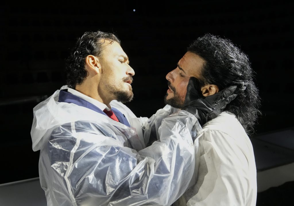 Per Zelmira purtroppo ha scelto la seconda strada, realizzando uno spettacolo che, oltre tutto, non tiene conto degli inconvenienti sonori posti da uno spazio come l’Auditorium Scavolini. Insieme a Barbora Horáková (a proposito, perché non affidare direttamente a lei lo spettacolo, visto che è pure un’ottima regista?) ha concepito un gigantesco palcoscenico rettangolare al centro, con l’orchestra incastonata al suo interno e il pubblico disposto a cerchio sulle gradinate. Non credendo troppo al testo di Leone Tottola – uno di quei librettisti a torto sottovalutati – il regista spagnolo ha introdotto qualche elemento che avrebbe dovuto essere trasgressivo, come il rapporto omosessuale tra Antenore (che aspira a diventare re) e Leucippo (sorta di eminenza grigia che lo spinge nella conquista del potere). E per rispettare la parità di genere, tanto più che l’azione si svolge a Lesbo, correva anche l’obbligo di un bacio saffico tra la protagonista e la fedele Emma: insomma una sorta di conformismo queer, che non aggiunge niente di nuovo a Rossini e ormai non scandalizza più nessuno. Tutt’al più fa sbadigliare.