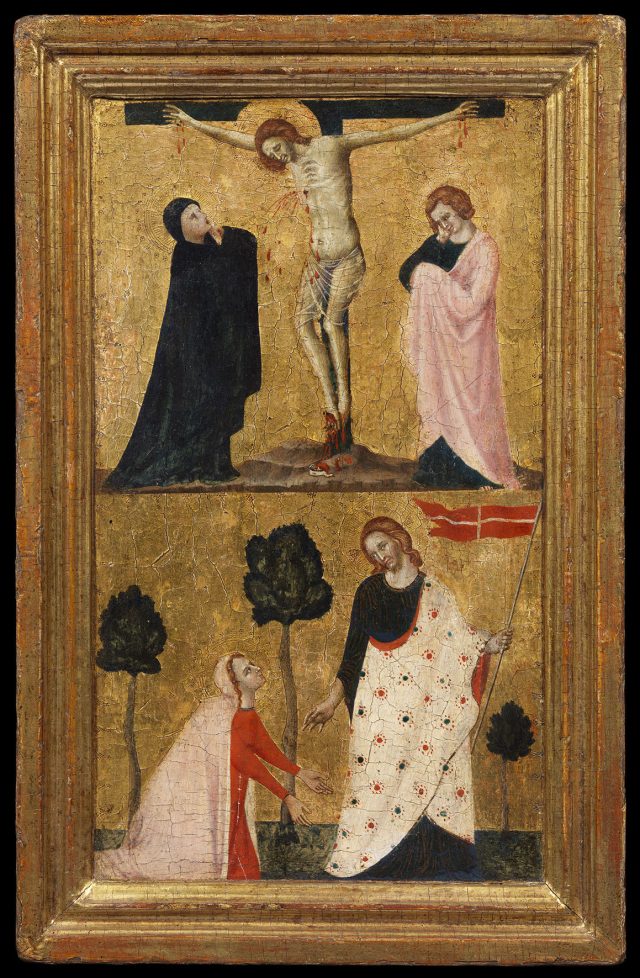 Pertanto è preferibile continuare a riferirsi all’autore come al “maestro di Verucchio”, il quale si dimostra narratore potente che racconta senza mai rinunciare ai simboli, imprescindibili nell’arte sacra tradizionale. Dal verbo greco symabllo, ovvero “mettere insieme”, “unire”, i simboli sono ponti che collegano la realtà terrena con quella celeste: cose comuni, come quelle che costituiscono le materie prime dalle quali si ricavano le sostanze necessarie per la pittura (legni, stucchi, tempere…), divengono strumenti di teofanie, quali sono le opere d’arte. I dipinti non sono semplicemente una biblia pauperum, dottrina per gli illetterati, ma offrono chiavi di lettura ulteriori anche ai dotti, permettendo di risalire dall’immagine al prototipo celeste.