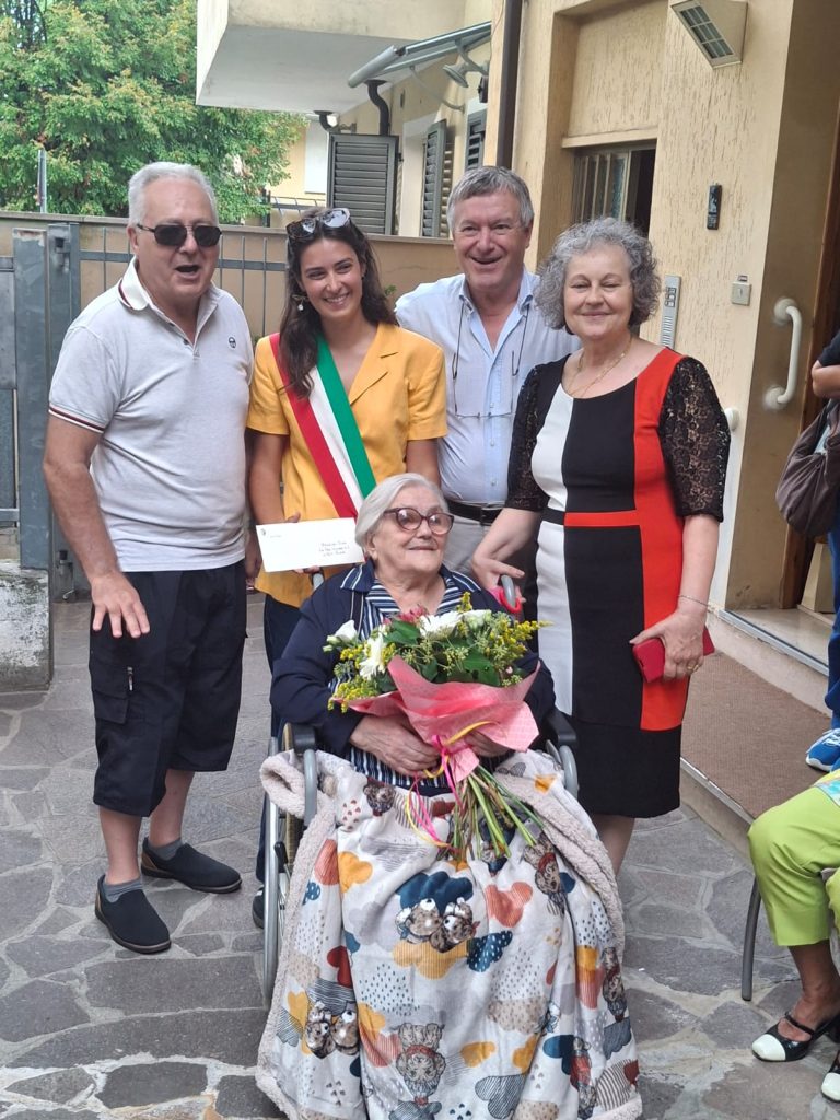 Poco distante, un’altra grande donna ha raggiunto lo stesso traguardo. A San Giuliano Mare, Dina Balducci ha festeggiato i suoi 100 anni circondata dall’affetto della sua numerosa famiglia (nella foto): cinque figli, dieci nipoti, nove pronipoti, e il ricordo sempre presente dei due figli scomparsi troppo presto. Al suo fianco, l’assessora Francesca Mattei, che a nome del Comune ha voluto portare l’abbraccio della città.