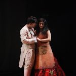 Il lavoro registico ha dato i suoi frutti anche sugli interpreti: con una voce dalle calde ombreggiature mezzosopranili, la giovane Martiniana Antonie – lunghi capelli scuri e abito rosso fiammeggiante – è stata una solida protagonista, dal fraseggio morbido ed elegante (giunta appena un po’ provata al rondò finale). Accanto a lei il Ramiro del giovane tenore Pietro Adaini si è fatto apprezzare soprattutto per la facilità negli acuti, mentre un po’ estraneo alla vocalità rossiniana è apparso il pur corretto Clemente Antonio Daliotti, nell’impegnativo ruolo di Dandini, per una certa mancanza di rotondità e la tendenza a semplificare qualche coloratura. Pablo Ruiz ha impresso a Don Magnifico una dose di robusta, sanguigna comicità e Daniele Antonangeli – dall’aspetto ieratico, quasi sacerdotale – si è rivelato un apprezzabile Alidoro, riuscendo a venire a capo onorevolmente della sua difficilissima aria. Interpretavano le due sorellastre il soprano Gloria Paci e il mezzosoprano Adriana Di Paola: quest’ultima davvero un’ottima Tisbe, per colore e sostanza vocale.