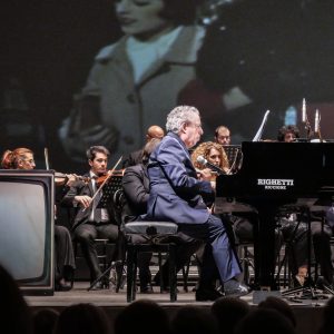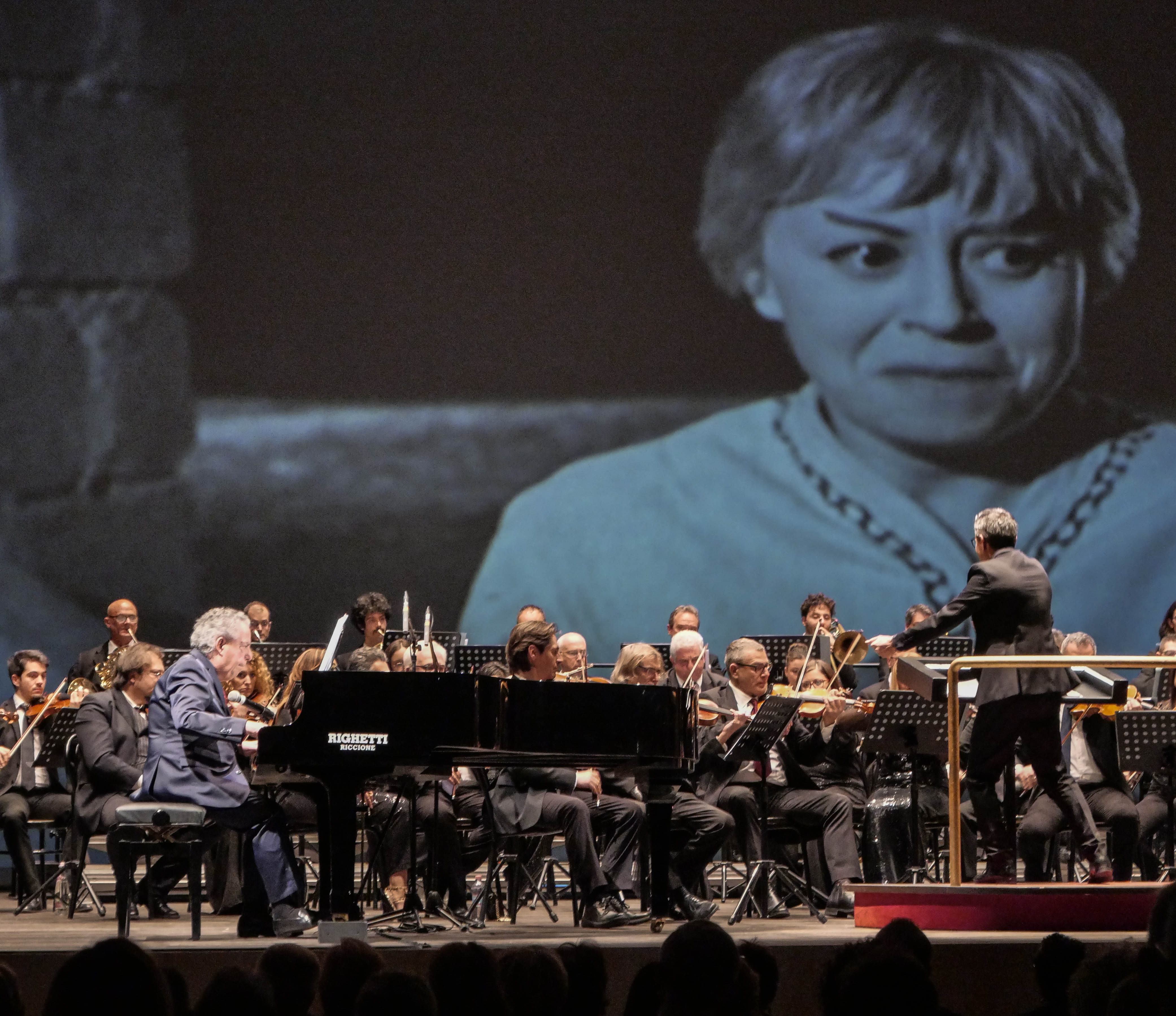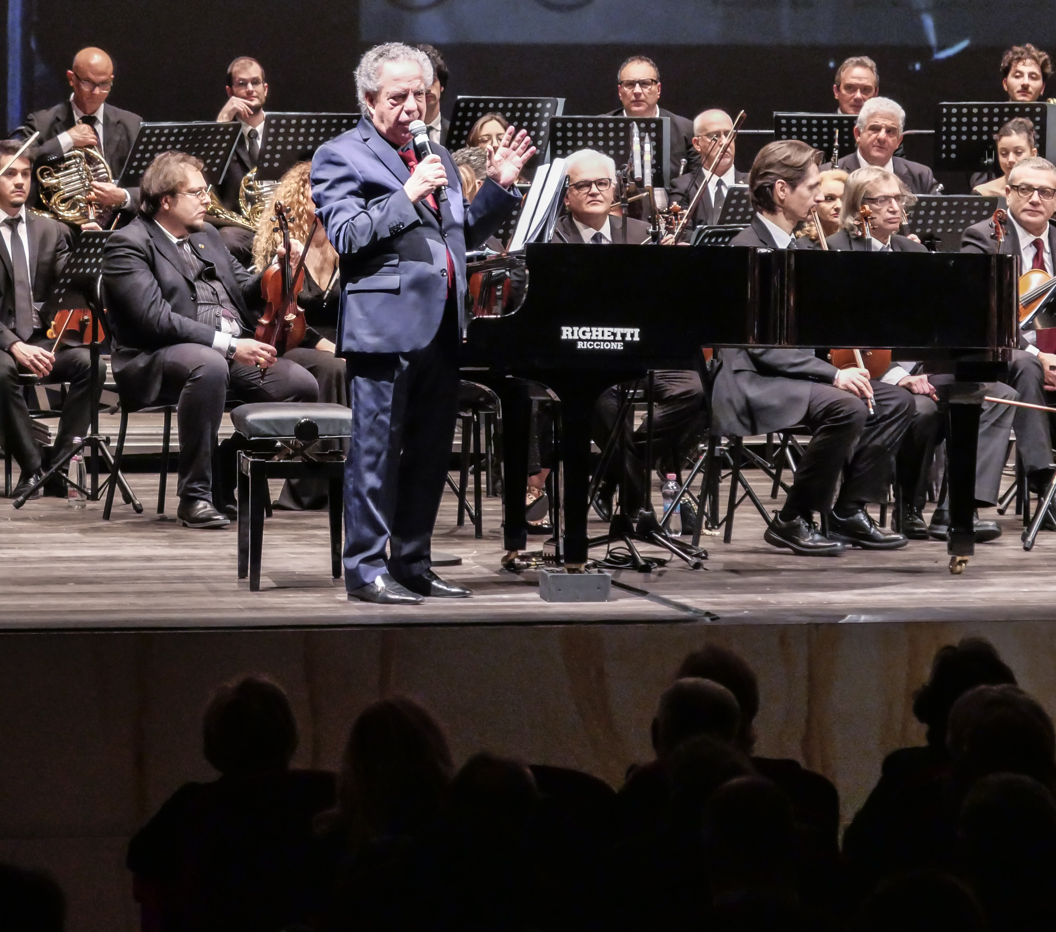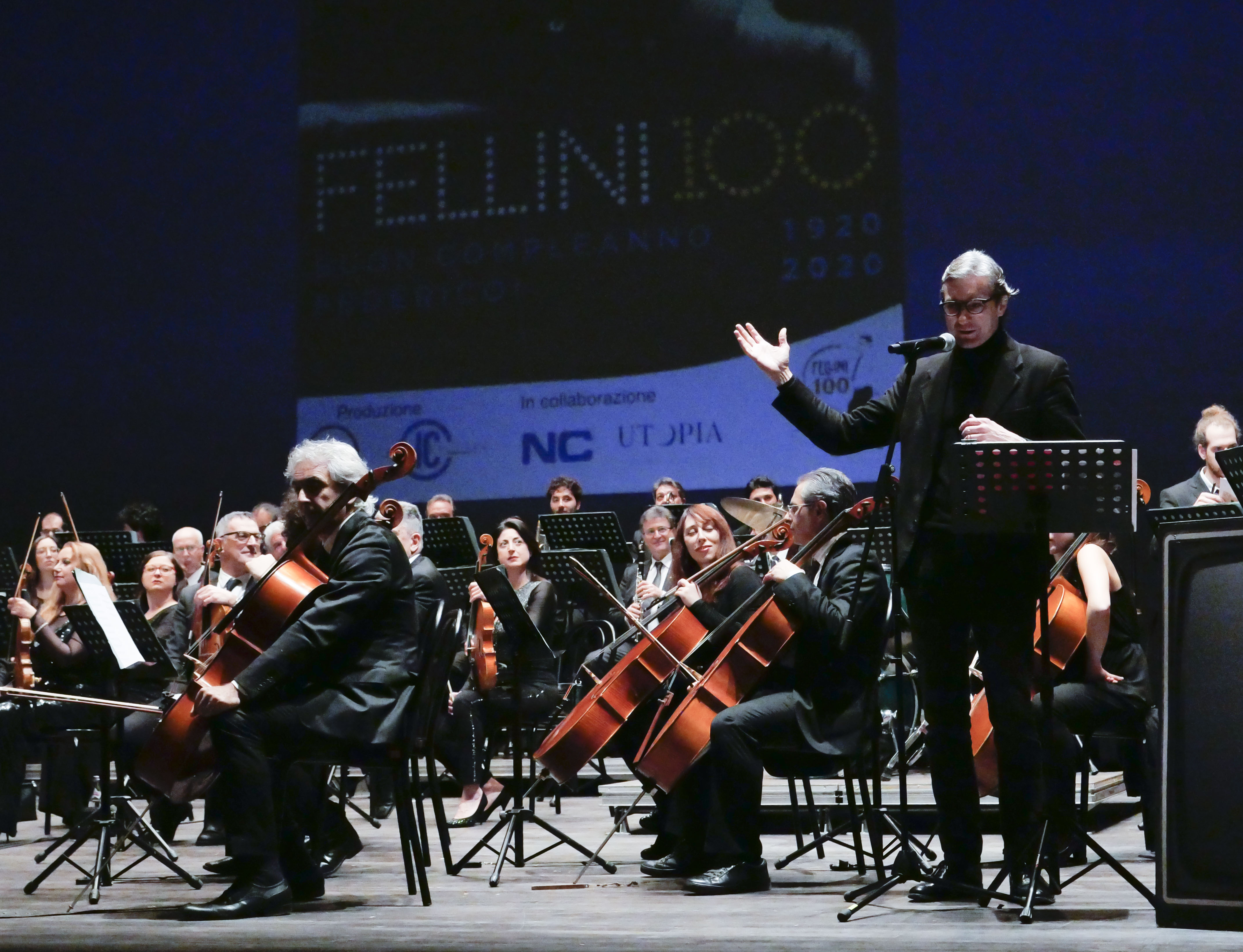 In un Teatro Galli sold out per il concerto di “Buon Compleanno Federico”, omaggio ai 100 anni del grande maestro del cinema, lunedì 20 gennaio Vince Tempera in gran spolvero ha saputo coinvolgere durante i 160 minuti di concerto il pubblico. Insieme lui sul palco del Galli si è esibita la SIMPHONITALY e l’Orchestra sinfonica OLES di Lecce e del Salento diretta da Eliseo Castrignanò.