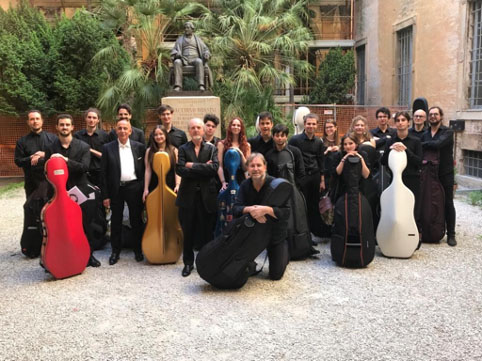 Si comincia giovedì 30 giugno alle ore 21 con il concerto per venti violoncelli della Rossini Cellos Orchestra (nella foto), diretta da Claudio Casadei, al pianoforte Franco Morri. In programma brani di Beethoven e Bach, ma anche le colonne sonore realizzate da Ennio Morricone per tanti film di successo, da Nuovo Cinema Paradiso a C’era una volta il West, da La leggenda del pianista sull’oceano a Giù la testa.