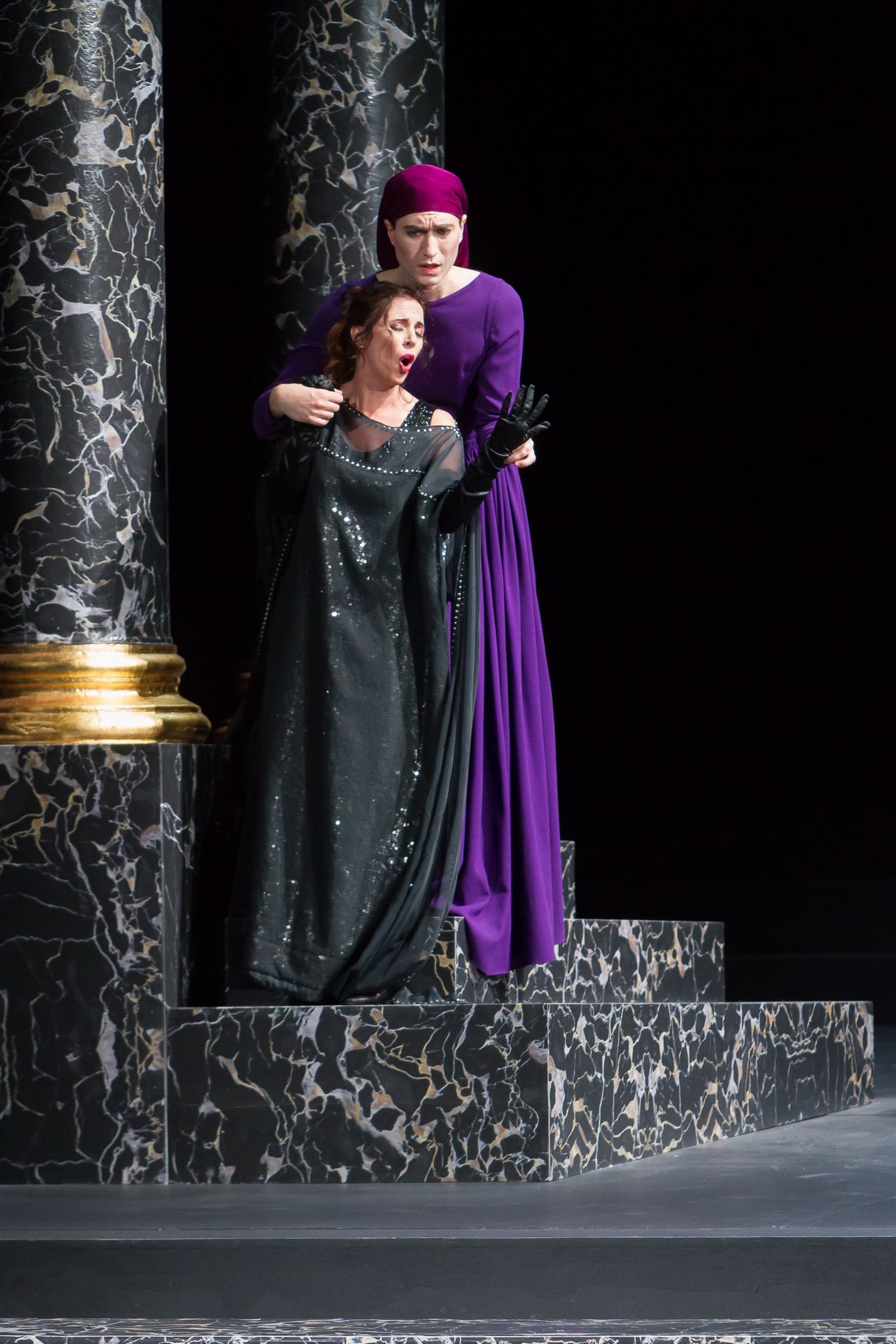 La compagnia di canto poteva contare su un ragguardevole quartetto protagonistico. Roberta Mameli è la bella Poppea, che – per la sua scalata al potere – punta decisamente sull’avvenenza ancor più che sull’espressività vocale. Tuttavia regala momenti di struggente lirismo, condividendoli con il sopranista Federico Fiorio, che tratteggia un ambiguo Nerone, nevrotico e stizzoso. È l’espressività il tratto distintivo del controtenore Enrico Torre, interprete di Ottone, mentre José Maria Lomonaco sfrutta il bel timbro autenticamente mezzosopranile per disegnare il personaggio di Ottavia. A questi personaggi si contrappone Seneca: con solida vocalità il basso Federico Sacchi riesce a imprimere autorevolezza morale alla figura del filosofo, l’unico ad aver in qualche modo a cuore la ragion di stato. Altre figure di rilievo sono la giovane Drusilla (un’intensa Chiara Nicastro) che, con la sua generosità verso l’amato, è forse la sola ad avere un atteggiamento positivo; il poeta Lucano, reso icastico da Luigi Morassi grazie al bel timbro tenorile; le nutrici delle due rivali: il contralto Candida Guida, nel ruolo di Arnalta, efficace soprattutto nel canto della ninna nanna a Poppea, e il controtenore Danilo Pastore, antesignano delle tante vecchie en travesti che costellano il teatro barocco. Ma tutti meriterebbero una citazione: dal baritono Mauro Borgioni, interprete di ben quattro ruoli, al soprano Paola Valentina Molinari, nelle vesti di Amore. Da notare che le sorprese sono venute proprio dai personaggi minori, spesso assai giovani, molti dei quali hanno dimostrato familiarità con il «cantar di gorgia», secondo lo stile dell’epoca.