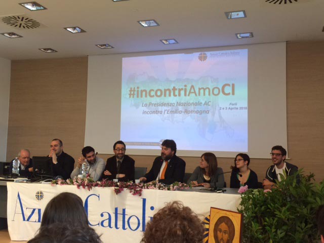 ac-nazionale-(alto)Vogliamo far sì che l’Azione Cattolica diventi capace di far declinare, non solo a se stessa ma in generale alle nostre comunità, quello che papa Francesco ha definito il “sogno” della Chiesa dell’Evangelii Gaudium». È questo il cuore del messaggio che il presidente nazionale di Ac, Matteo Truffelli, ha lasciato alla due giorni regionale di Forlì (con lui la vice adulti, Maria Grazia Vergari, i due vice giovani, Lucia Colombo e Michele Tridente, l’assistente Acr, don Marco Ghiazza, l’amministratore, Michele Panajotti, il segretario Msac, Gioele Anni). In Romagna, infatti, l’associazione che conta 21mila aderenti nelle quindici diocesi emiliano romagnole, ha vissuto una due giorni molto intensa di incontro, scambio, preghiera e festa con l’incontro tra la presidenza nazionale, i vescovi della regione, il consiglio regionale (composto dalle presidenze diocesane) e soprattutto la base dell’Ac, rappresentata da circa 250 presidenti parrocchiali sulle 468 associazioni di base.
