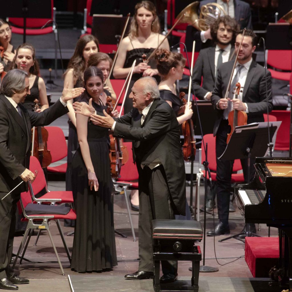 Ancora una volta, il Mozart di Muti punta su sonorità piene – scelta ottimale in uno spazio acusticamente un po’ dispersivo come il gigantesco Palazzo De André – e sembra guardare con occhio molto attento anche al versante teatrale. Da perfetto padrone di casa, il direttore ha messo il solista sempre a proprio agio, fornendogli un sostegno impeccabile sia per l’appiombo ritmico sia per l’accuratissimo dosaggio degli equilibri sonori. Da parte sua Pollini si è accostato alle due pagine forte di un’esperienza maturata attraverso la frequentazione di tanti autori, anche novecenteschi, privilegiando le aperture verso orizzonti che già si schiudono su un ottocento mai apparso così imminente. L’affetto del pubblico, che affollava numerosissimo ogni ordine di posti, si è concretizzato anche nel premio che Cristina Muti (insieme ai condirettori artistici Franco Masotti e Angelo Nicastro) ha consegnato al pianista, come in passato era talvolta successo con altri grandi artisti.