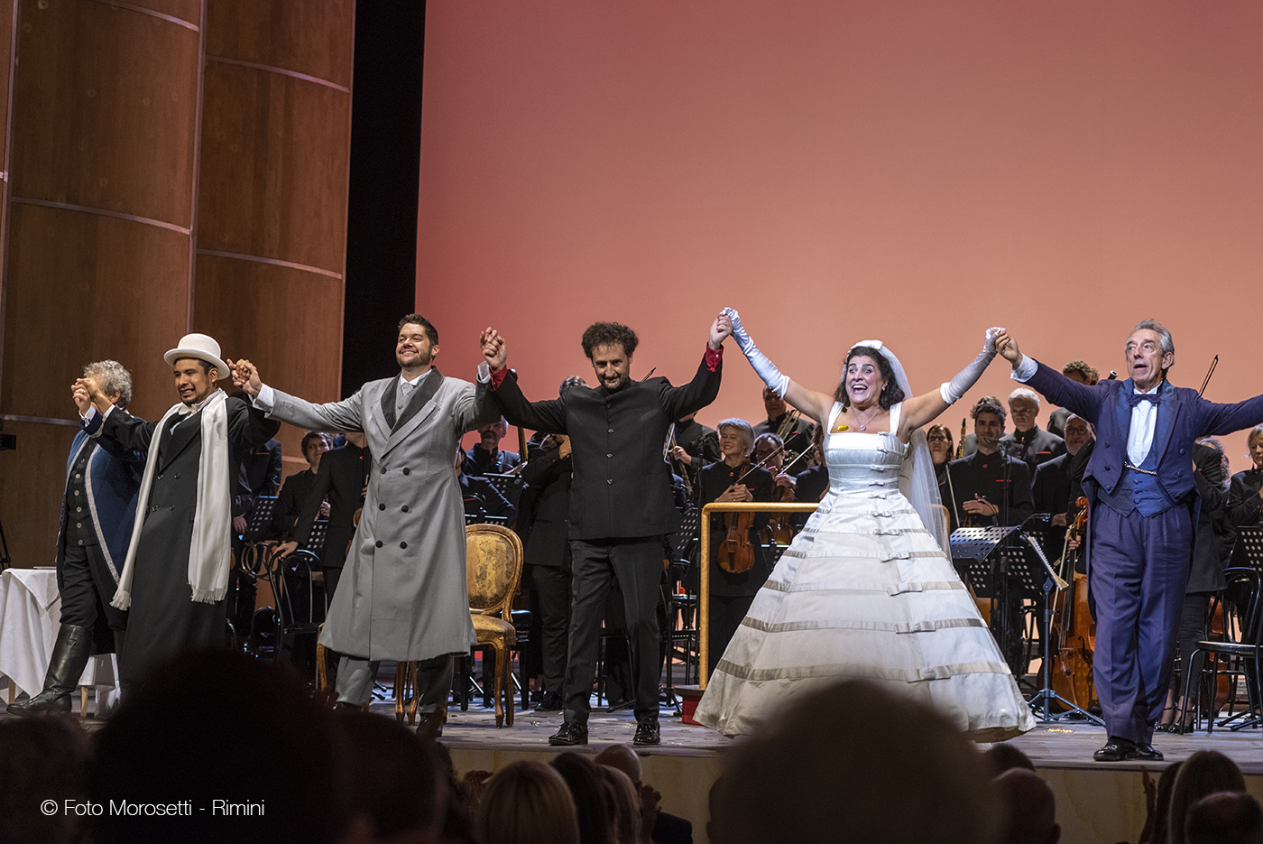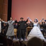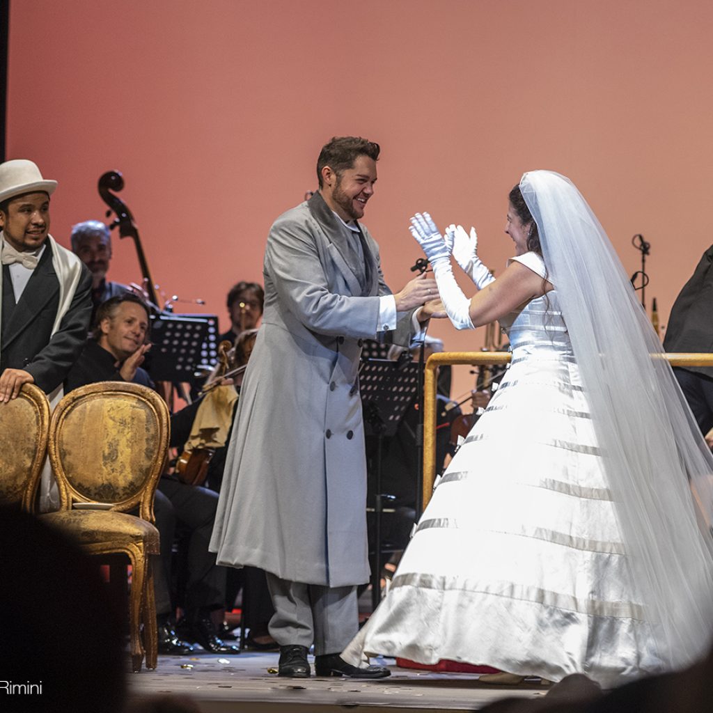 L’orgoglio e la soddisfazione per il teatro ritrovato era leggibile sui volti di tutti: non solo perché l’edificio del Poletti, archistar del suo tempo, esponente fra i massimi del purismo neoclassicista, è magnifico, ma questa inaugurazione sembra aver spazzato via definitivamente gli scontri fra chi auspicava un restauro con sala moderna e i sostenitori “del com’era e dov’era”. Prima dell’inizio dello spettacolo è salito sul palcoscenico Luciano Bagli, un signore nato proprio il 28 dicembre del 1943, giorno del bombardamento che ha fatto crollare gran parte dell’edificio del Teatro, uccidendo anche tanti riminesi innocenti. Poi ha preso la parola il sindaco Andrea Gnassi: oltre a esprimere la sua soddisfazione di primo cittadino per aver portato a termine un’impresa così impegnativa, ha riportato correttamente l’attenzione sulla vera origine delle difficoltà di ricostruzione, che le polemiche degli ultimi decenni avevano rischiato di far passare in sordina: gli effetti di una guerra devastante. Per Rimini e per tutti.