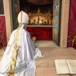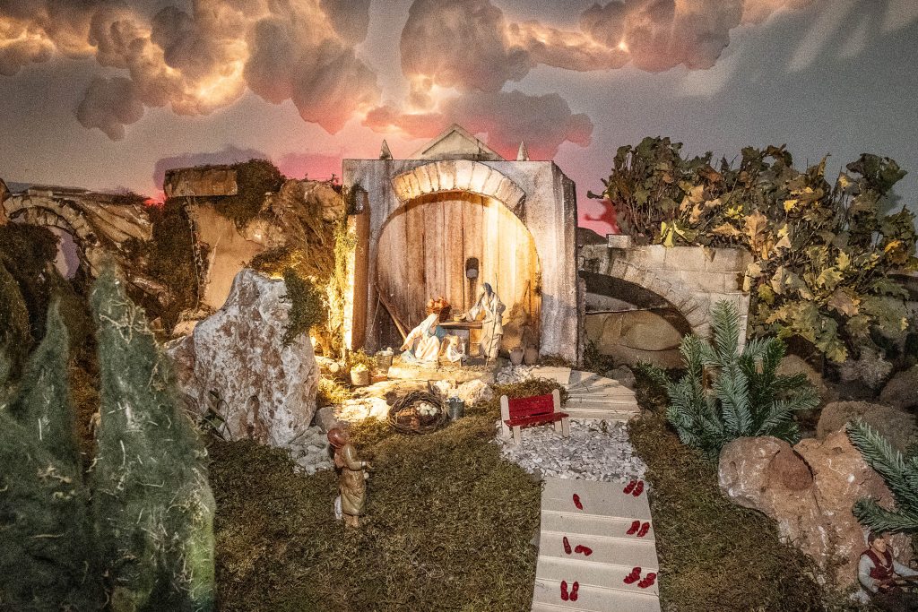 Vediamo ora i presepi che definiamo concettuali perché allestiti sulla base di qualche idea. Per questo attribuiamo un punteggio supplementare per l’originalità e l’efficacia della rappresentazione. Tre allestimenti si dividono il primo posto. Bellaria Sacro cuore quest’anno si è cimentata con il non facile tema della violenza alle donne, risolto con una sfilata di scarpe rosse e relativa panchina. San Gaudenzo di Rimini ha accostato una grande natività ai temi della sofferenza e della persecuzione mettendo come sfondo la “Crocifissione bianca” di Marc Chagall. Il Museo Mulino Sapignoli svolge il tema “Sorgenti di luce” mettendo in scena la valle del Marecchia con belle riproduzioni di San Leo, Madonna di Saiano e del mulino stesso. Un passo più indietro Sant’Andrea di Poggio Berni indica il presepe come segno di speranza accostandolo alle rovine della guerra.