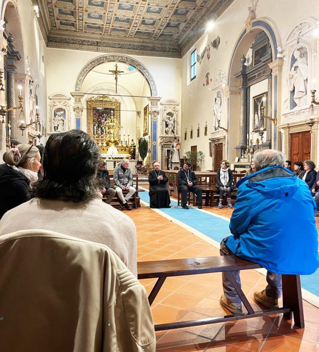 Quel sabato, il meteo al di fuori dell’Abbazia rifletteva, con la sua pioggia leggera, ma fitta e con il suo cielo coperto, lo stato d’animo dei partecipanti all’incontro. Volti segnati da un patimento percettibile, seduti in cerchio, a parlare e ascoltare. Presente anche il vescovo Nicolò, il quale ha espresso la sua vicinanza.