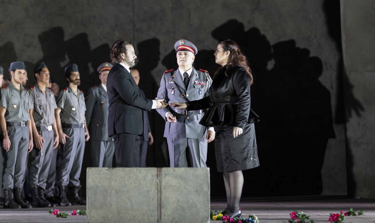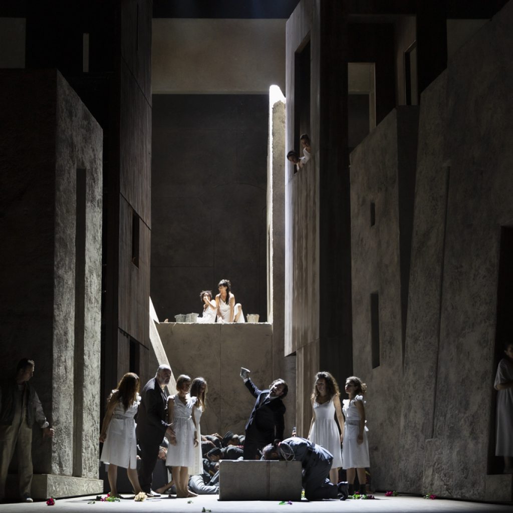 ROMA, 15 dicembre 2019 – Il nodo drammatico dei Vêpres siciliennes, secondo la regista Valentina Carrasco, sono le lacerazioni del cuore: per la siciliana Hélène è il contrasto fra l’insanabile dolore causato dall’uccisione del fratello e l’amore verso Henri; per il governatore Montfort, invece, è l’imperativo politico di mantenere l’ordine a entrare in rotta di collisione con i sentimenti paterni, dopo aver preso atto che il ribelle Henri è suo figlio; mentre per quest’ultimo è l’amore di Hélène, insieme ai sentimenti patriottici, a scontrarsi con l’improvvisa scoperta che il tiranno dell’isola è suo padre. Solo il medico Giovanni da Procida sembra estraneo ai tormenti psicologici: immune da tentennamenti e proteso solo a difendere la causa dell’indipendenza della Sicilia, nel XIII secolo, dagli occupanti Angioini. A questi contrasti interiori fanno da cornice un luogo petroso e astratto, con grandi muraglie (una Palermo solo mentale) disegnate da Richard Peduzzi, in cui si integrano i costumi senza tempo di Luis Carvalho.