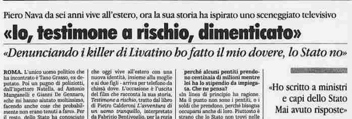 Dopo l’aperitivo della legalità (ore 18,30), sarà proiettato (ore 19,20) il film “Il Giudice ragazzino”; nel corso della serata oltre al dibattito sulla relazione del dott. Paci saranno letti passi significativi della lettera scritta da Pietro Nava, testimone oculare dell’omicidio di Livatino (raccolta agli atti della Commissione Antimafia), da 28 anni costretto per evitare ritorsioni a scomparire nel nulla, cambiare nome e vita da un giorno all’altro per affidarsi alla protezione dell’oblio. (c.z.)