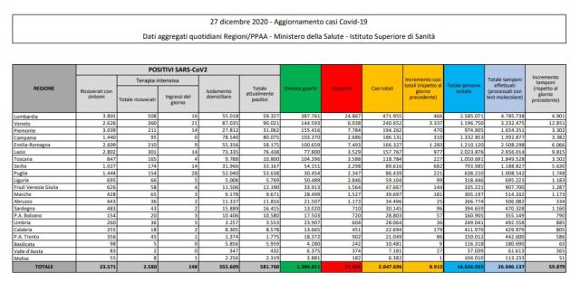 I dimessi/guariti sono 1.394.011, con un incremento di 7.813 unità nelle ultime 24 ore. La regione con il maggior numero di nuovi casi è il Veneto (3.337), seguita da Emilia Romagna (1.283), Lazio (997), Sicilia (682) e Piemonte (470).