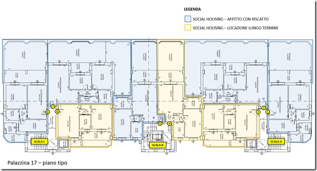 L’iniziativa partirà con la locazione e vendita convenzionata delle 29 unità residenziali della Palazzina 17 – unità già da giugno agibili e disponibili – di cui 15 appartamenti saranno destinati alla locazione convenzionata, 9 appartamenti alla locazione con formula “affitto con riscatto” e 5 appartamenti alla vendita convenzionata; oltre ad un piano interrato che ospita 29 box auto. Per la Palazzina 16, attualmente in costruzione, si prevede invece la fine lavori entro l’estate 2019.