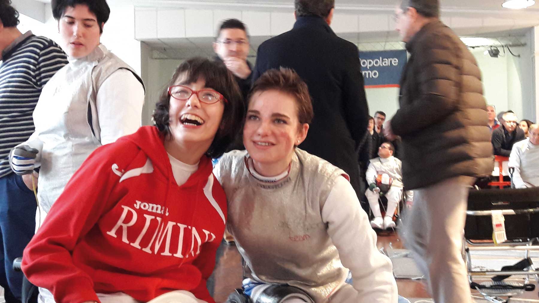 Le gare di schema paralimpica sono suddivise in tre categorie: A, comprendente gli atleti con disabilità più lievi; la B, che raggruppa le persone con lesioni che riducono la mobilita del busto e infine la categoria C quella di cui fanno parte le persone con le disabilità più gravi. Io e Bebe apparteniamo alla categoria B. Io e lei abbiamo anche alcune caratteristiche comuni: siamo entrambe mancine e per entrambe l’anno più significativo è stato il 2008. Anno in cui lei è stata colpita dalla malattia e io mi sono dovuta sottoporre ad un’operazione che attualmente mi permette di camminare correttamente. Il fatto di averla incontrata mi ha dato una spinta notevole a livello emotivo che mi ha permesso di fare una buona gara, infatti sono arrivata seconda e questo risultato mi ha permesso di qualificarmi per gli assoluti di scherma che si sono tenuti a Gorizia.