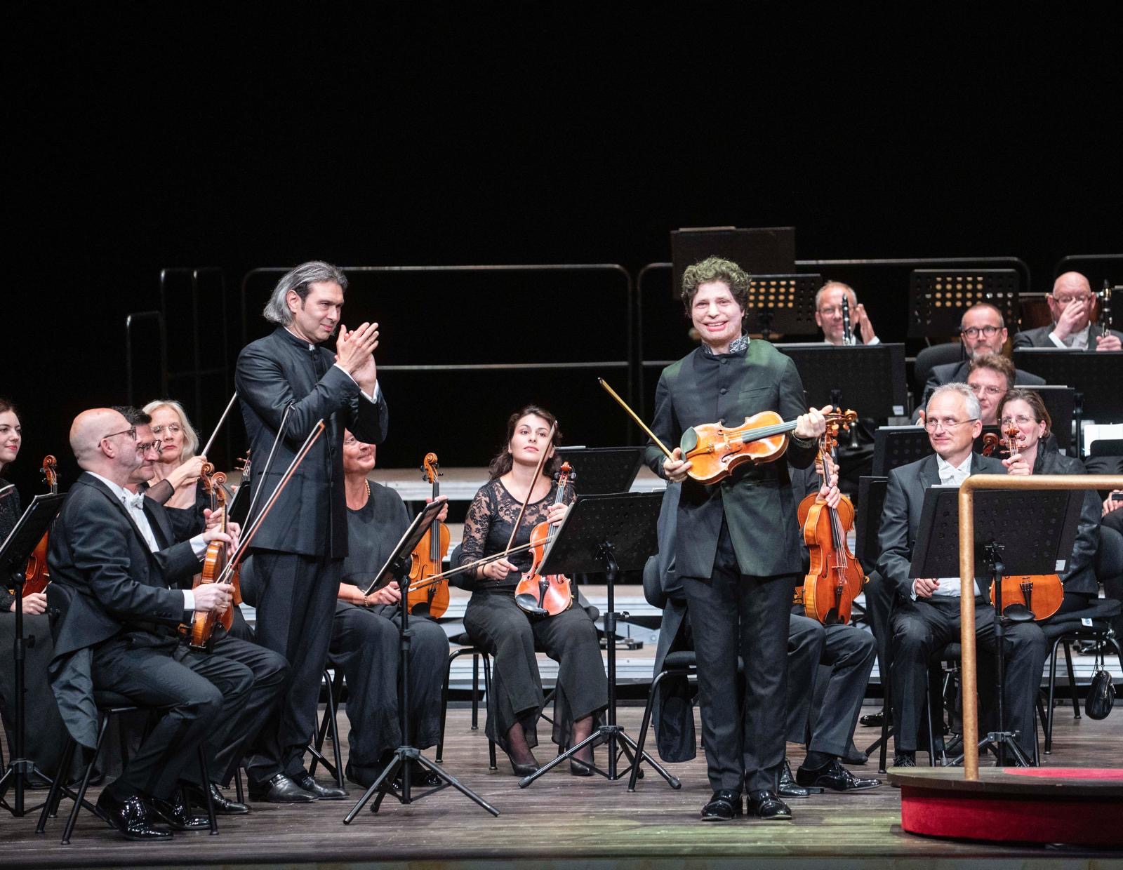 Il direttore Vladimir Jurowski applaude il violinista Augustin Hadelich
