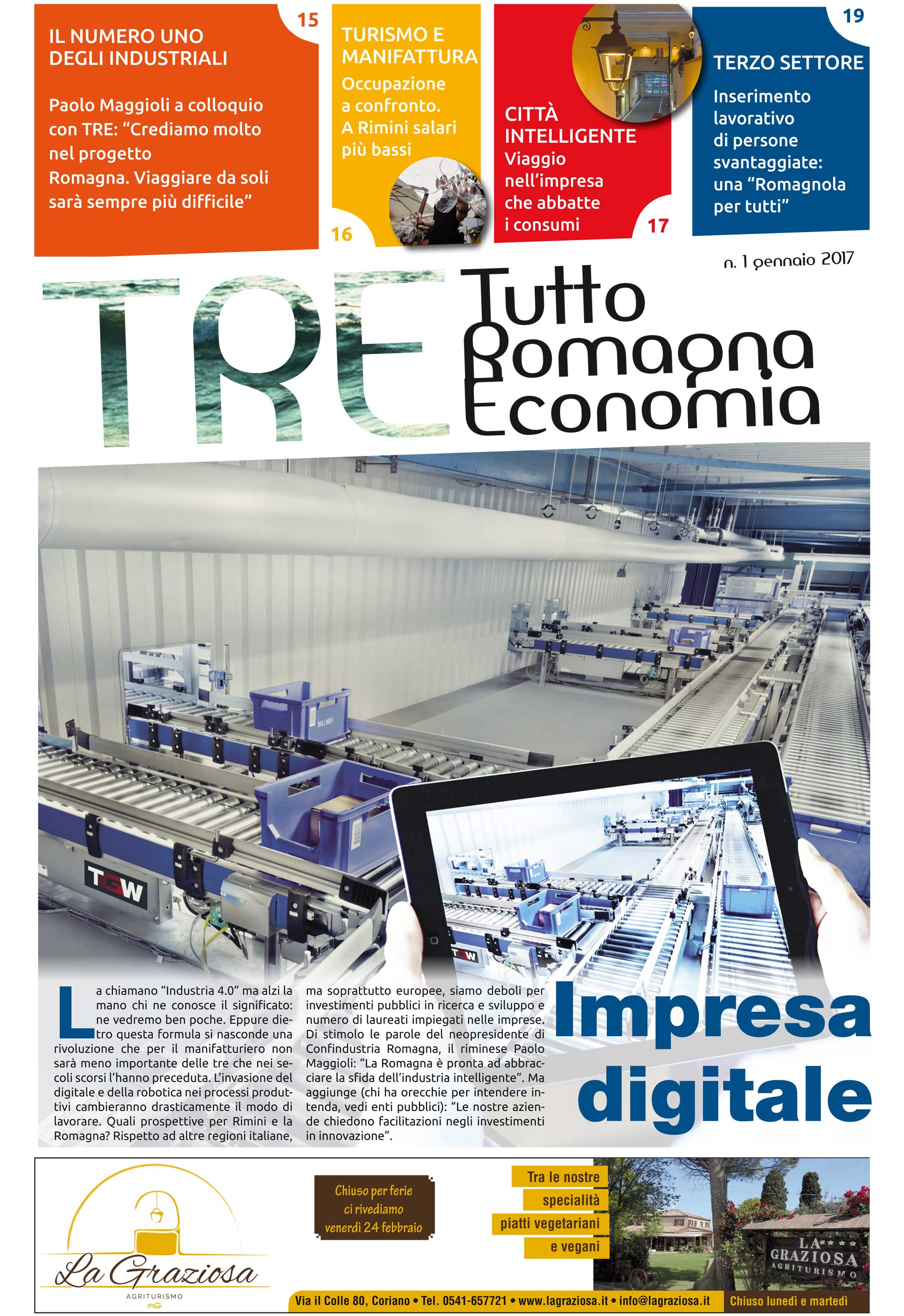 Da TRE… a TRE. Torna con questo numero de ilPonte il mensile di approfondimento che da tredici anni indaga sull’economia riminese. Ma torna in una veste ed un percorso tutti nuovi. Stesso acronimo – TRE appunto – ma un orizzonte e una prospettiva non più provinciali. Da qui il nuovo nome di Tutto Romagna Economia, in linea con le scelte di Area Vasta adottate da sempre più realtà (da Confindustria alla Camera di Commercio, dall’Ausl fino, ultima, Agenzia Mobilità). Sarà un processo graduale, anche nella diffusione: TRE diverrà inserto, infatti, anche di altri settimanali Fisc, da Cesena a Ravenna. Per contribuire a una Romagna più unita e forte.