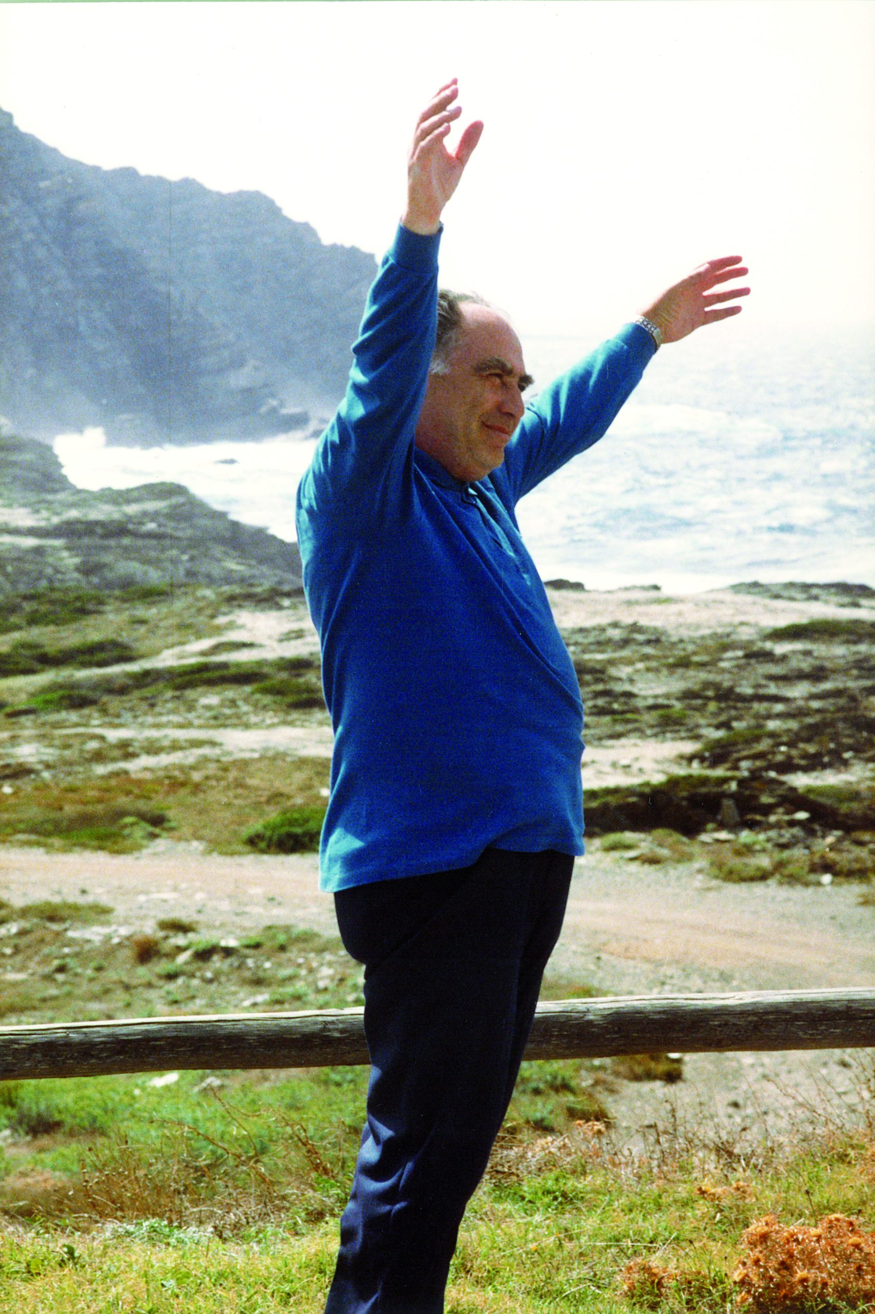 La mostra, promossa nel decennale della morte, ha avuto un’anteprima al Meeting. In quell’occasione alcuni suoi ex studenti al liceo della Karis hanno ricordato un suo refrain durante le ore di lezione. Ai giovani don Giancarlo ripeteva che la questione decisiva era se si stava di fronte alla vita in un atteggiamento di chiusura (e faceva il gesto di piegare il capo e di nasconderlo fra braccio e avambraccio) o in un atteggiamento di apertura (e spalancava le braccia con le palme rivolte verso l’alto). Qualcosa che assomiglia molto alla postura da lui assunta di fronte al suggestivo spettacolo di Capo Falcone, in Sardegna, la cui immagine (nella foto) è proposta nella mostra insieme al contraccolpo suscitato in lui dall’impetuoso gioco delle onde e del vento sugli scogli, una metafora della dinamica eterna fra libertà dell’uomo ed energia di Dio. È l’amore per la libertà che ha fatto di lui un grande educatore.