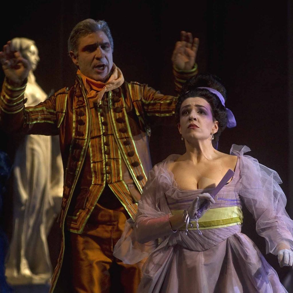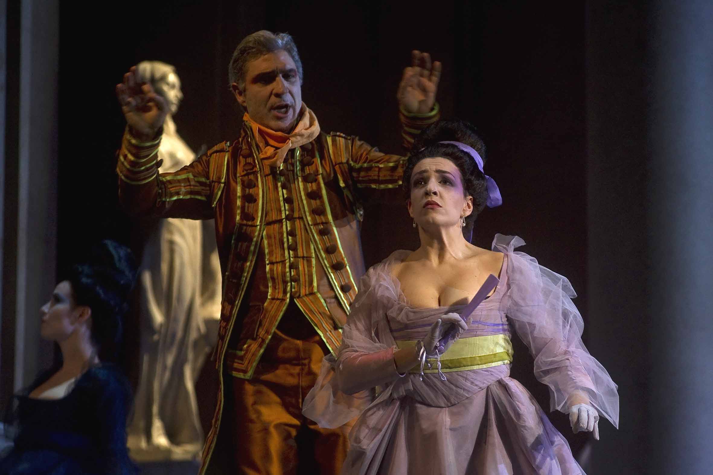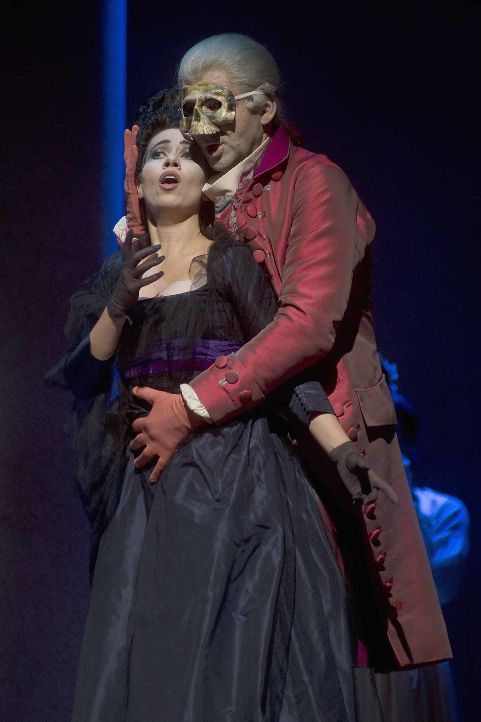 Peccato che a tanta vitalità orchestrale non corrispondesse un protagonista capace di slanci: Dimitris Tiliakos, anzi, è apparso un freddo e compassato calcolatore; né una correttezza di fondo è bastata a compensare una voce priva di sensualità. A risarcire, almeno in parte, la delusione per un protagonista così statico è venuto il Leporello ben a fuoco di Andrea Concetti, anche ottimo attore, dotato di grande verve scenica. Se la voce tradisce qualche logorio, il fraseggio e gli accenti sono ideali per un personaggio a più dimensioni: in parte servo astuto, nel solco della commedia dell’arte, e in parte animato da un desiderio di riscatto sociale che lo porta quasi a essere l’alter ego del protagonista. Più sbiaditi gli altri personaggi, a cominciare dalla Donna Anna di Lucia Cesaroni, un po’ sottodimensionata sul piano drammatico – il suo è un autentico ruolo deuteragonistico – ma che, comunque, ha saputo affrontare con sicurezza le colorature. Aggraziata vocalmente Francesca Sassu, anche se non troppo incisiva nei panni di Donna Elvira. Nelle due insidiose arie di Don Ottavio, il tenore Giulio Pelligra è venuto a capo delle difficoltà vocali, lasciando un po’ in ombra i profondi significati introspettivi che Mozart affida al personaggio. Arianna Vendittelli, purtroppo indisposta, ha interpretato una Zerlina apparsa lodevole nelle intenzioni. Duttile interprete, Daniel Giulianini ha esibito consistenti mezzi vocali ed è stato in grado di valorizzare anche i risvolti comici di Masetto; molto sonoro, come capita raramente, il Commendatore di Cristian Saitta.