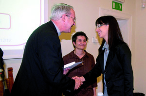 Nella foto, Concorso Alberto Marvelli. Il vescovo Francesco premia Maria Grazia Rosi di Reggio Emilia che ha vinto con la tesi di laurea “Marvelli, preghiera, azione, sacrificio” il concorso promosso dall’Istituto Superiore di Scienze Religiose e dal Centro di documentazione dedicato al Beato riminese (foto Gallini)