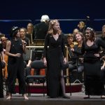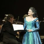 Ogni brano vocale era preceduto da uno strumentale e qualche perplessità in più riguarda, appunto, la prova dell’orchestra, caratterizzata da una concezione non sempre condivisibile sul piano filologico, soprattutto per il protobarocco. Prime parti soliste comunque notevolissime, dalla tromba naturale al flauto (dolce e traversiere) e al mandolino: lo si percepiva bene, perché proprio con loro ha duettato la Bartoli, sempre perfetta quanto ad appiombo ritmico e intonazione. Se comunque l’Orfeo monteverdiano eseguito da un’orchestra così imponente è oggi in controtendenza, con Händel e Vivaldi – ossia un secolo dopo – l’arbitrarietà non sembrava più tale; e, procedendo poi verso anni più recenti, diventava anzi sempre più apprezzabile, come nella sinfonia del Barbiere rossiniano, mentre nel caso della sua Cenerentola appariva addirittura ideale.