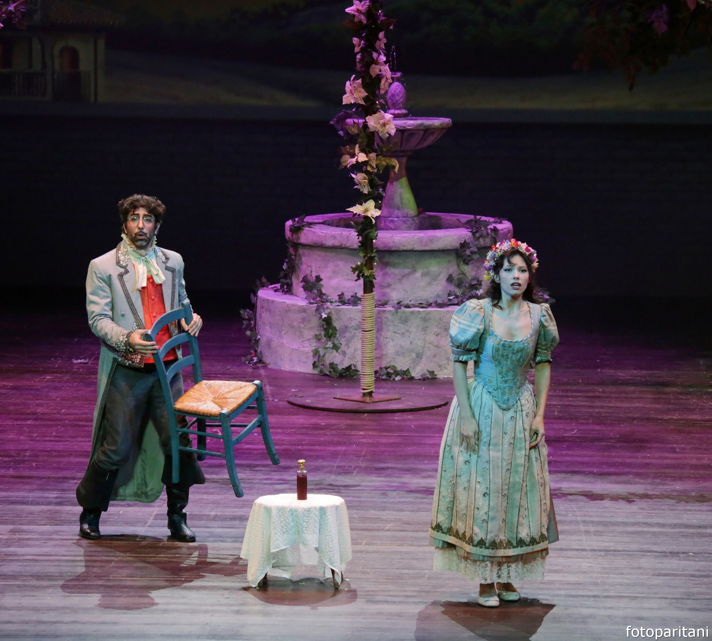 Il baritono Mattia Venni (Dulcamara) e il soprano Isidora Moles (Adina) – Foto Paritani
