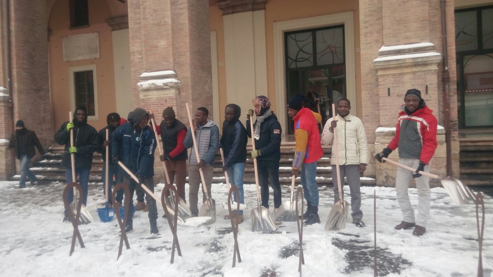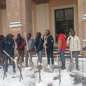 I richiedenti asilo della Caritas, intanto, ieri, martedì 27 febbraio, si sono messi all’opera muniti di pale e scopettoni. Divisi in gruppetti, alcuni si sono recati in piazza Tre Martiri, altri all’Arco di Augusto mentre i restanti si sono diretti in piazza Cavour (nelle foto).