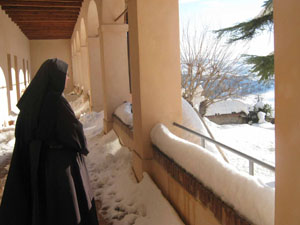 “Ci alziamo alle 4.45, alle 5.15 c’è la preghiera fino alle 8. Poi il lavoro che normalmente riguarda icone, preparazione di ritiri, veglie, l’orto dove però la neve ha bruciato tutto. Prepariamo bomboniere e piccole cose su commissioni. A mezzogiorno c’è la preghiera poi di nuovo al lavoro e alle 17 la Santa messa. Alle 20.30 un momento di ricreazione insieme e poi l’ultimo momento di preghiera e alle 22.30 tutte nelle celle a dormire”.