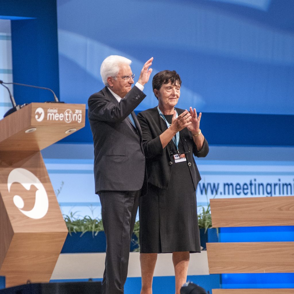 Tra i fondatori del Meeting per l’amicizia fra i popoli, e per 27 anni presidente dell’omonima Fondazione, insegnante di lungo corso, ora Grande Ufficiale dell’Ordine al Merito della Repubblica Italiana. E’ stato il presidente della Repubblica Sergio Mattarella a conferire a Emilia Guarnieri la prestigiosa onorificenza, una tra le massime conferite dal Capo dello Stato (nella foto, il presidente Mattarella con la Guarnieri al Meeting) a chi abbia «acquisito benemerenze verso la Nazione nel campo delle scienze, delle lettere, delle arti, dell’economia e nel disimpegno di pubbliche cariche e di attività svolte ai fini sociali, filantropici ed umanitari, nonché per lunghi e segnalati servizi nelle carriere civili e militari». Già nel 2003 ad Emilia Guarnieri era stata conferita, dall’allora presidente Carlo Azeglio Ciampi, l’onorificenza di Commendatore dell’Ordine al Merito della Repubblica Italiana.