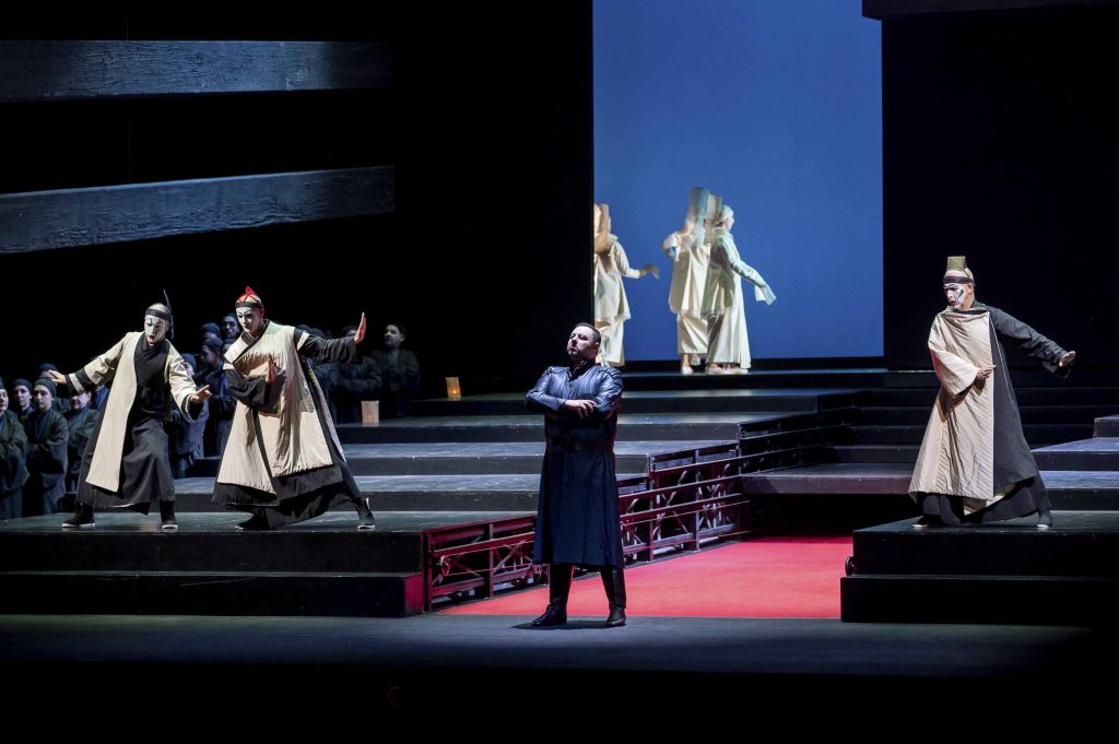 Il direttore ha sempre ben sostenuto le linee vocali, ma purtroppo la protagonista France Dariz non è riuscita a giovarsene: il soprano francese ha faticato a imprimere stabilità al suono, soprattutto nelle ascese in acuto, senza che tali difficoltà venissero compensate dall’espressività. Particolarmente a suo agio nel registro centrale, dove ha sfoggiato solidi mezzi, il tenore georgiano Mikheil Sheshaberidze è stato un Calaf insolitamente distaccato, in accordo con i desiderata registici: atteso dal pubblico al varco del Nessun dorma, non si è lasciato tentare da effetti facili per strappare l’applauso ed è riuscito a imprimere anche apprezzabili sfumature al suo canto. Dotata di una dignità quasi regale, il soprano argentino Jaquelina Livieri ha interpretato un’impeccabile Liù, emozionante soprattutto in Tu che di gel sei cinta. Molto ben definiti i tre ministri, a cominciare dal baritono Fabio Previati, un Ping sempre sonoro, ben supportato dal Pang di Saverio Pugliese e dal Pong di Matteo Mezzaro. Il veterano Giacomo Prestia ha affrontato il personaggio del vecchio Timur con accento nobile ed emissione scorrevole. Più aspro è apparso il tenore Raffaele Feo, come Altoum, mentre nel declamato del Mandarino si è fatto apprezzare il baritono Benjamin Cho. Valide le prove dei due cori: sia il Lirico di Modena e il Municipale di Piacenza diretti da Corrado Casati sia quello di voci bianche, sempre del Comunale di Modena, preparato da Paolo Gattolin.