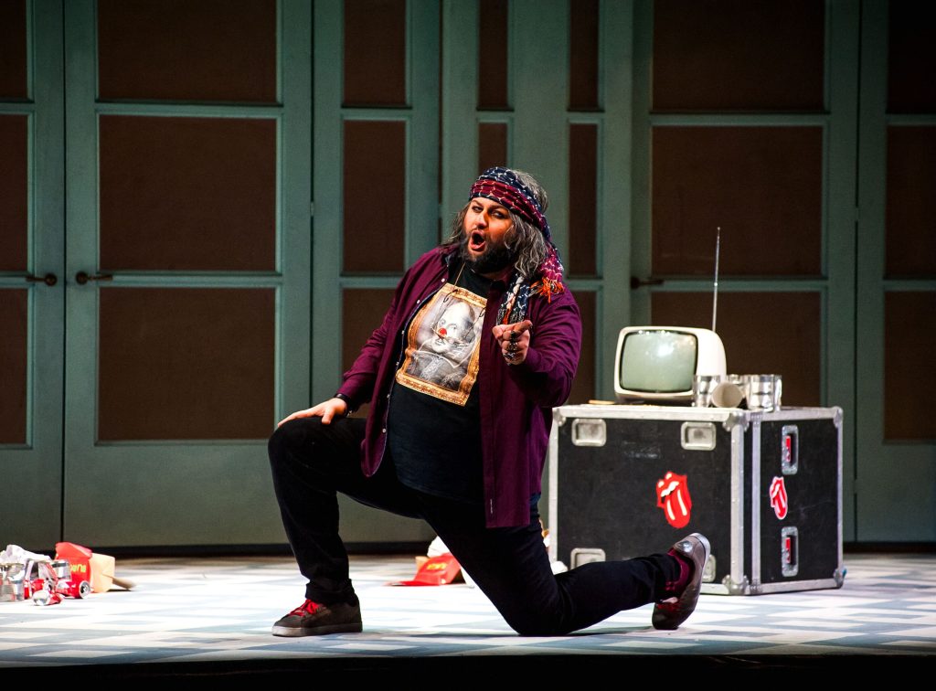 Ultimo titolo, dunque, l’estremo capolavoro di Verdi, che ha effettuato la sua seconda tappa nella magnifica sala del Ventidio Basso: da sottolineare che una città di piccole dimensioni come Ascoli possiede ben due teatri storici! Lo spettacolo, proveniente da Como, è apparso ben leggibile sul piano visivo. La duttile scatola scenica elaborata da Emanuele Sinisi, pur rimanendo pressoché immutata, consente di delineare facilmente le cornici dei diversi quadri configurati nello splendido libretto di Boito: dall’osteria della Giarrettiera – rappresentata da un tavolo da biliardo attorno al quale si trastullano Falstaff e i suoi sodali Bardolfo e Pistola – alla quercia di Herne.