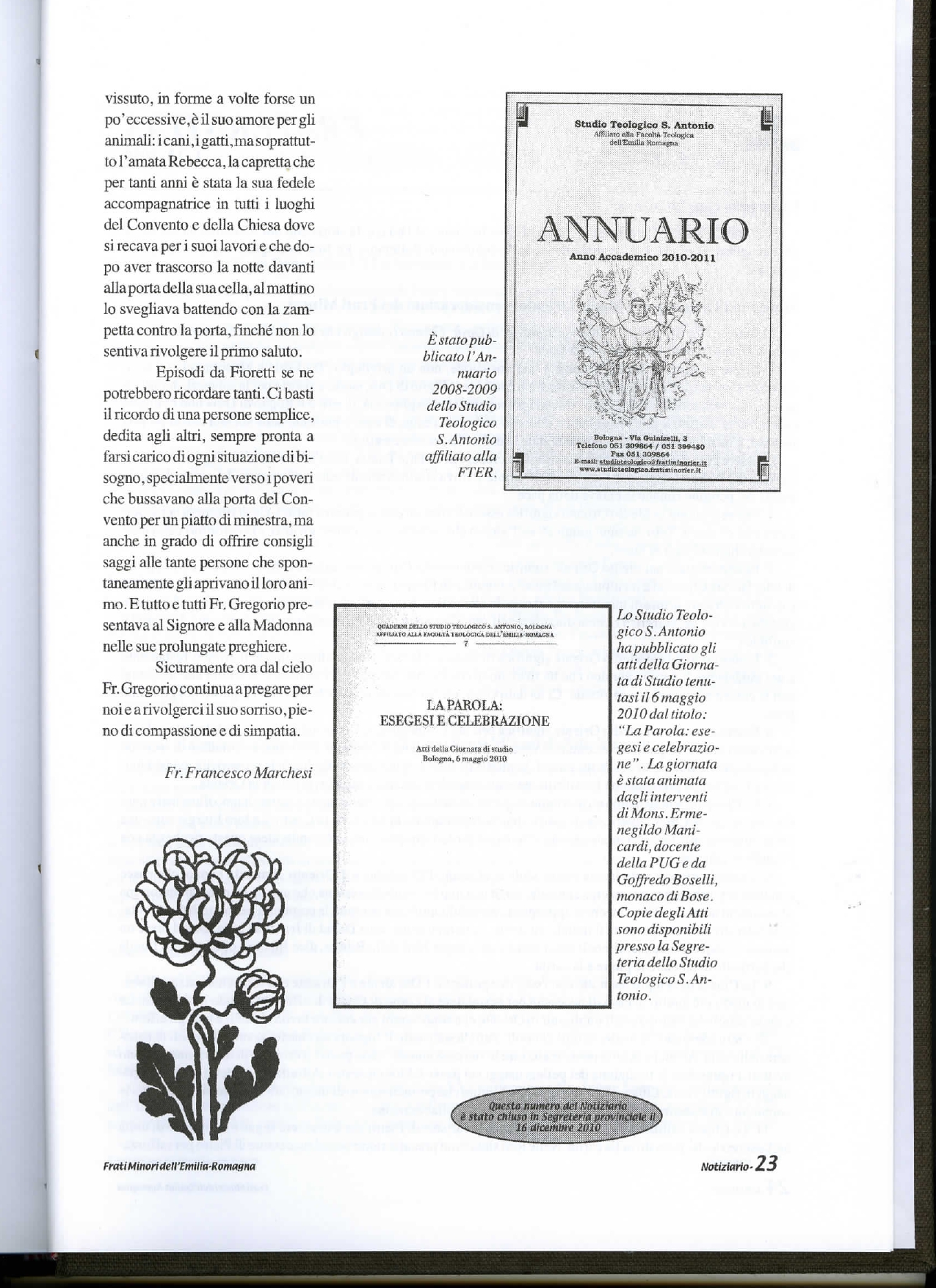 (Notiziario frati Minori dell’Emilia Romagna 16.12.2010