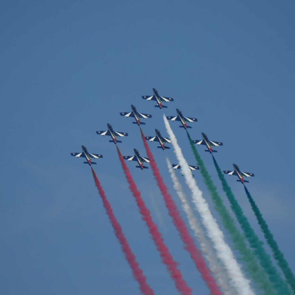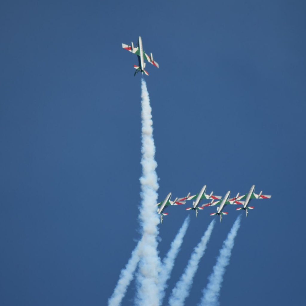 Come per la Nazionale. Tutti stretti – bambini, genitori, nonni, ragazzi e giovani – e con gli occhi all’insù a celebrare lo show delle Frecce Tricolori, nel cielo di Rimini. Oltre 100.000 presenze sono state calcolate per ammirare le spettacolari acrobazie di questa pattuglia che porta l’onore e il vanto dell’Italia in giro per il mondo.