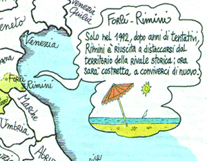 In una ironica cartina geografica dell’Italia, apparsa domenica scorsa nel Corriere della Sera sul tema dell’abolizione di 64 delle attuali 107 Province, ci hanno illustrato con queste parole: ”Forlì-Rimini. Solo nel 1992, dopo anni di tentativi, Rimini è riuscita a distaccarsi dal territorio della rivale storica; ora sarà costretta a conviverci di nuovo”. Per la cronaca, e sia detto senza offesa per nessuno, a quanto pare anche Forlì passa in ombra sotto il dominio bizantino di Ravenna.