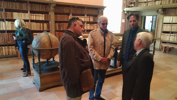 La biblioteca di Rimini è il frutto amorevole del grande gesto di un mecenate: Alessandro Gambalunga. Nato il 14 marzo 1554, nipote di un maestro muratore lombardo e figlio di un ricco commerciante di ferro che si era arricchito, oltre che con il commercio, con le doti delle sue quattro mogli, Gambalunga si laurea in diritto canonico e civile (a dispetto di quanto facevano i nobili dell’epoca) e acquista libri, specie nella piazza di Venezia, per poi trasportarli via mare nel suo palazzo riminese. “Gambalunga non si limita ad acquistare volumi legati all’interesse particolare – rilancia Meldini spingendo sulla particolarità del mecenate – ma pensa già ad un utilizzo pubblico del suo patrimonio, acquisendo volumi di cultura generale, ed apre la sua «collezione» alla consultazione quand’è ancora in vita”.