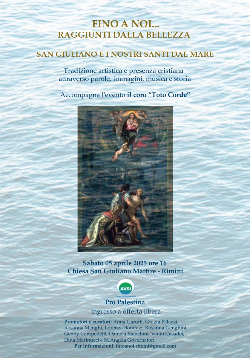 In questa prospettiva, ‘Fino a noi… raggiunti dalla bellezza’, l’iniziativa a sostegno di Avsi, ong che promuove progetti educativi per lo sviluppo in svariati Paesi in tutto il mondo, in programma per sabato 5 aprile (ore 16, chiesa di San giuliano Martire a Rimini) vede al centro alcune figure di santi “venuti dal mare”, che hanno plasmato la storia religiosa e civile della città e del territorio: i giovanissimi Giuliano e Colomba, martirizzato in Cilicia al tempo di Decio il primo e martire a Sens durante le persecuzioni di Aureliano la seconda; gli scalpellini Leo e Marino, animatori dei primi nuclei cristiani in Valmarecchia e sul Monte Titano dove è stata fondata la Repubblica più antica del mondo; infine il grande taumaturgo Nicola di Myra, meglio conosciuto come San Nicola di Bari, del quale, in occasione del Giubileo della Speranza, dal 6 dicembre scorso, è esposta in Duomo la reliquia dell’omero sinistro insieme ad una mostra a dedicata al santo.