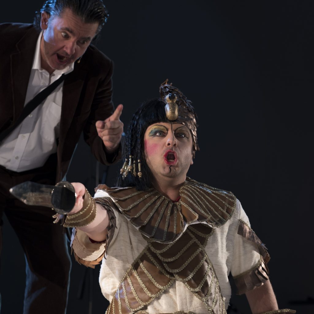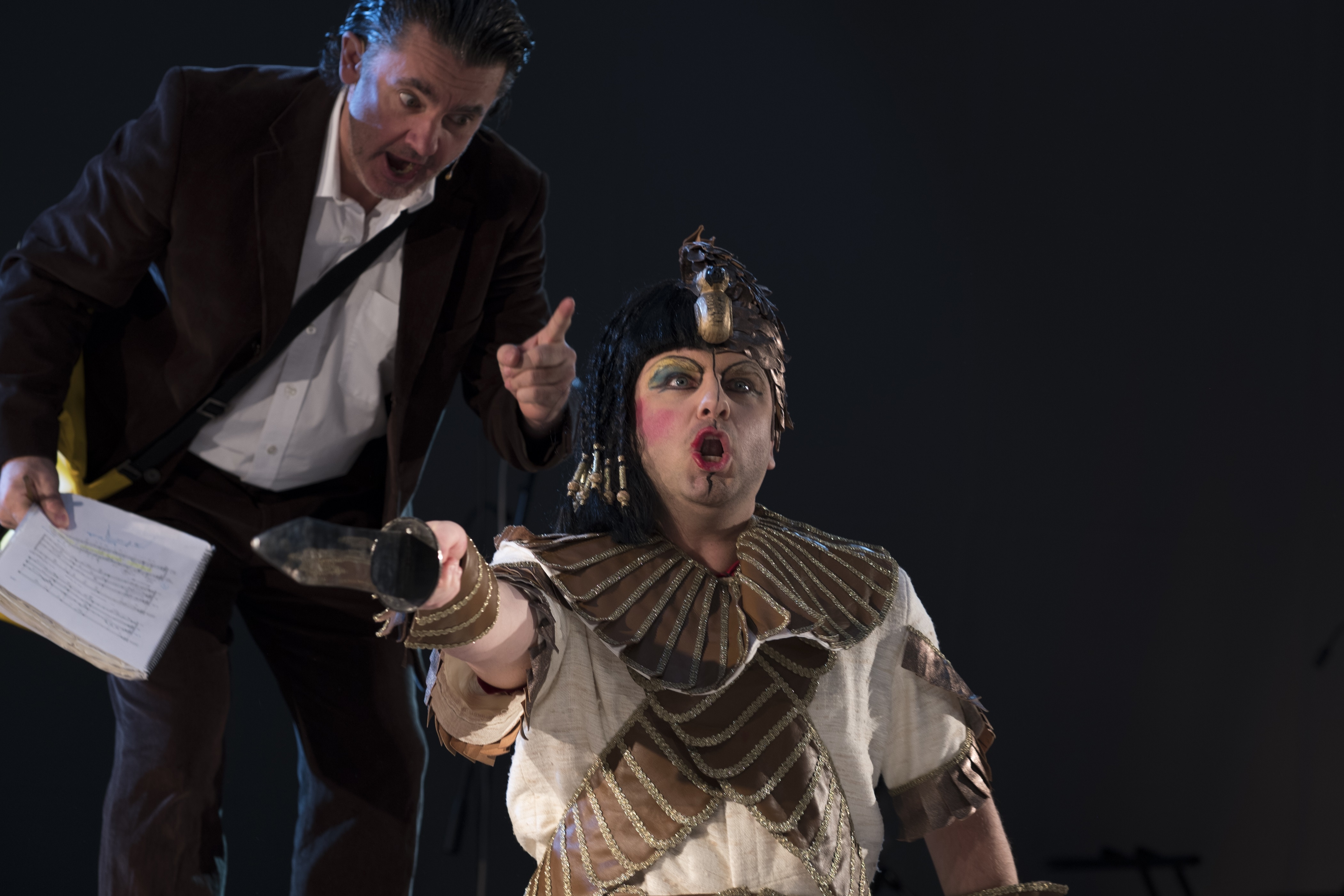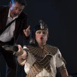 Per una riflessione in chiave comico-grottesca si è rivelata perfetta l’idea di scegliere la figura di Radamès come protagonista – è il personaggio tenorile per antonomasia, conosciuto pure da chi ha scarsa dimestichezza con il mondo della lirica – che diventa così epitome del genere operistico tout court. Mescolando, nel testo, più autori e lingue diverse per i personaggi, Eötvös ipotizza un tentativo di messinscena dell’Aida verdiana dove, per motivi di budget, si taglia sul numero degli interpreti. C’è un solo cantante, un controtenore, che presenta il vantaggio di poter dar voce sia a Radamès sia ad Aida, mentre attorno a lui si affollano ben tre registi (a quello d’opera se ne affianca uno teatrale e uno alle riprese video), dato che per loro – e qui lo sguardo del compositore ungherese si è rivelato davvero profetico – i soldi ci sono comunque.