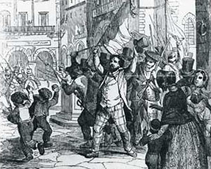 Il 19 marzo 1864 per la festa di san Giuseppe, scrive Luigi Tonini, i Democratici fanno la solita dimostrazione in onore di Giuseppe Mazzini e di Giuseppe Garibaldi. La giornata si conclude con l’uccisione di un noto liberale, il sarto Nicola Nagli. Ex carbonaro ed agente segreto antipontificio, eletto in Consiglio comunale nel 1849 al tempo della Repubblica romana, nel 1859 finito il governo papale il 21 giugno notte, diventa Commissario di Polizia, attento a mantenere l’ordine pubblico. Forse gli costa la vita l’aver difeso un sacerdote aggredito da alcuni militari.