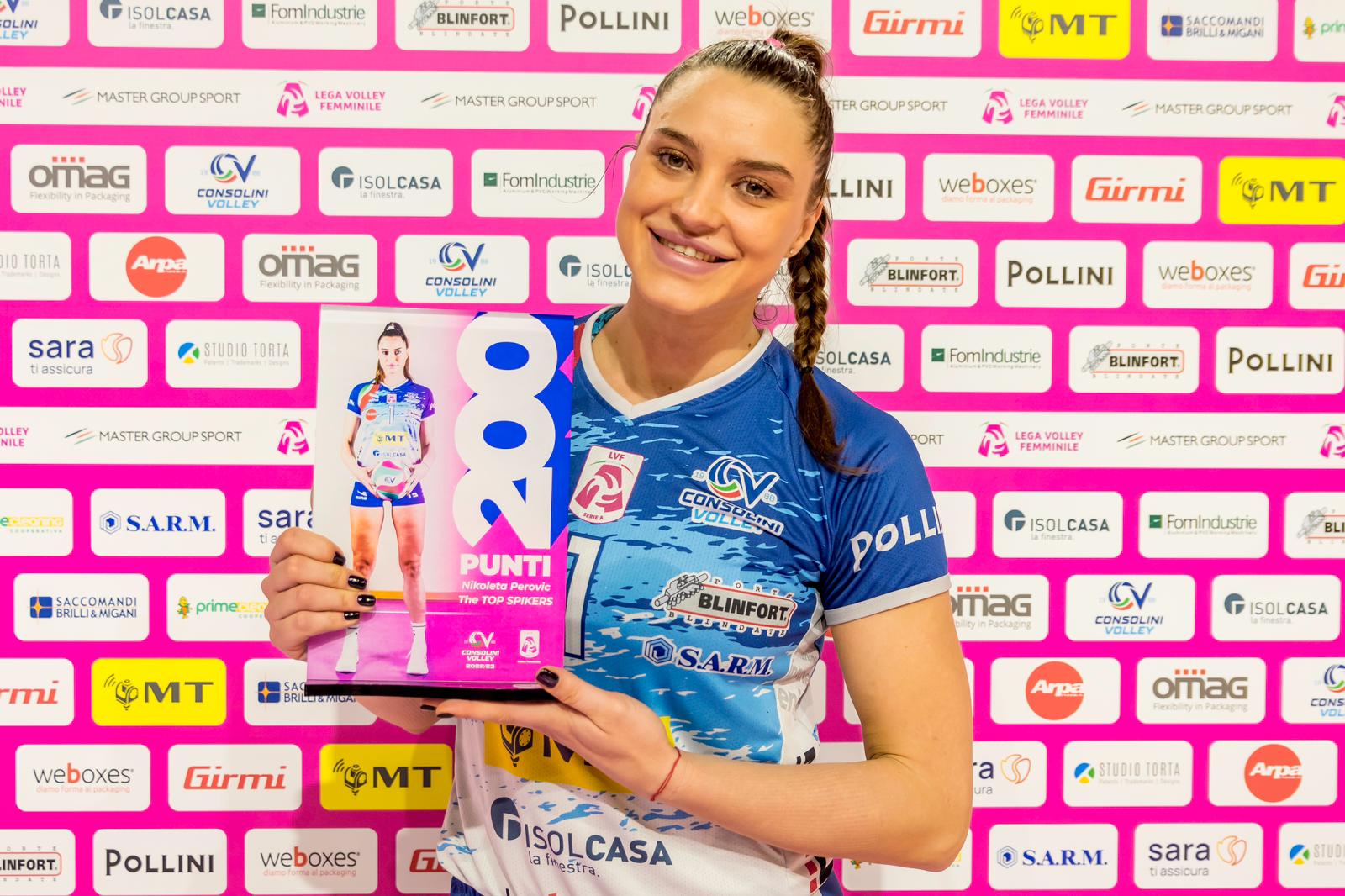 a Nikoleta Perovic. L’opposto dell’Omag-Mt, domenica, contro Messina, ha toccato quota 207 punti in appena nove gare di campionato. Per lei applausi, targhe e striscioni.