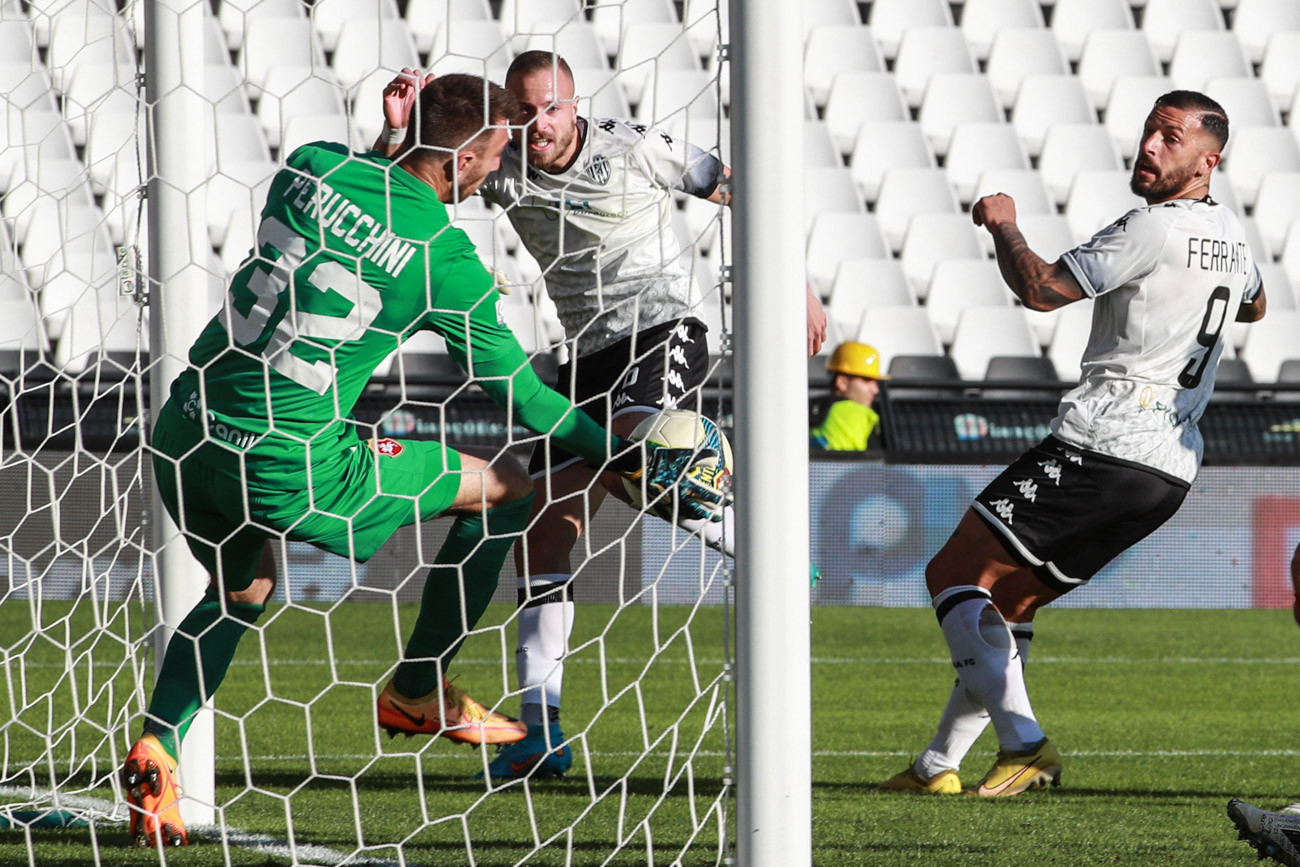 A quel punto, il Cesena, ha cercato di gettare il cuore oltre l’ostacolo fermato prima da un palo clamoroso di Calderoni, e poi Perucchini che si è trasformato da Superman per fermare un’incornata di Prestia (nella foto). Negli spogliatoi, Mimmo Toscano, ha puntato il dito contro la rete presa.
