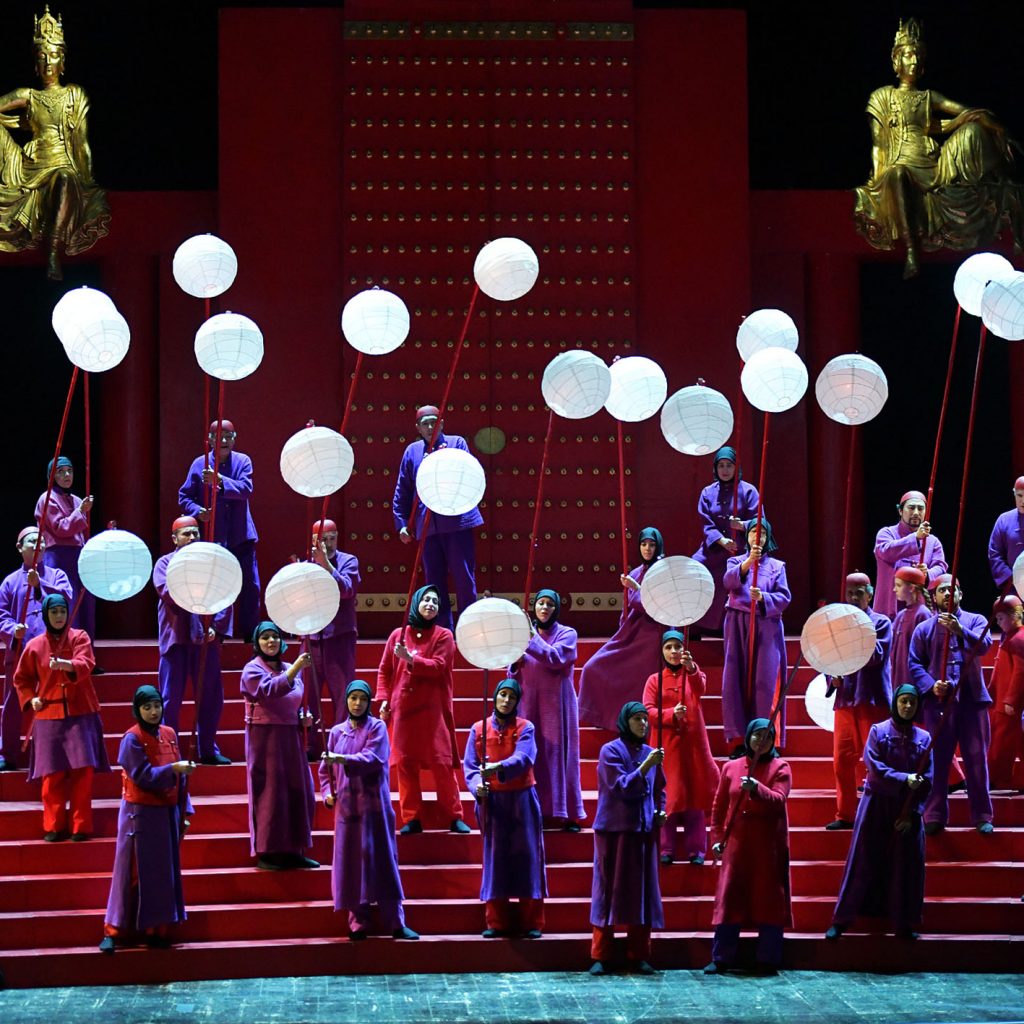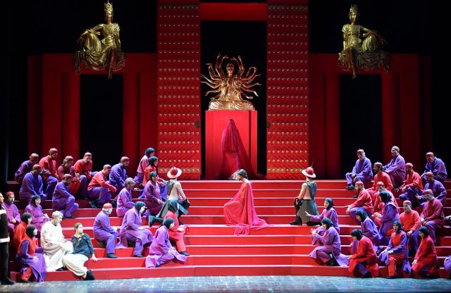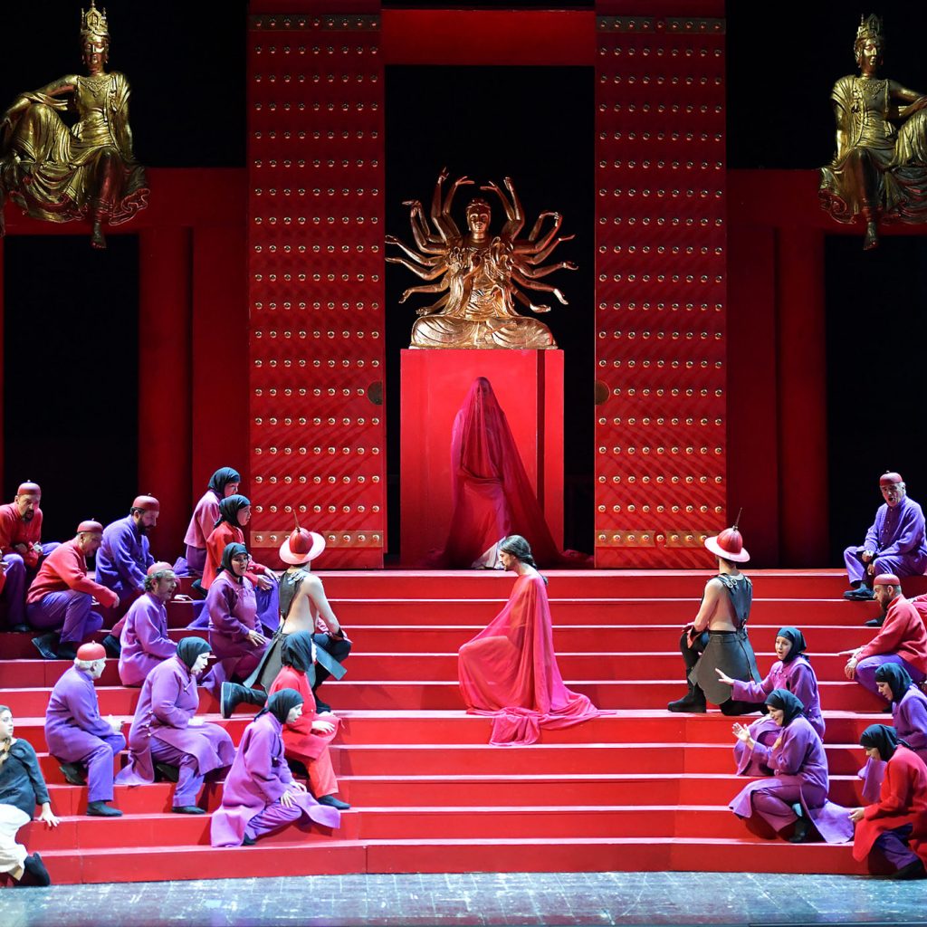 L’esecuzione del Teatro Pergolesi di Jesi, terminando invece dove era arrivato Puccini, rappresenta un’operazione fuori dal coro. E, soprattutto, coraggiosa per un teatro di provincia. Per renderla più plausibile sono stati così aboliti i due intervalli in modo da avere un unico arco esecutivo, di durata complessiva inferiore alle due ore. L’eventuale delusione per la mancanza di epilogo in questa fiaba noir di Carlo Gozzi (trasformata per Puccini in libretto da Giuseppe Adami e Renato Simoni) è stata compensata dal riuscito allestimento di Pier Luigi Pizzi, che punta soprattutto sulla bellezza degli accostamenti cromatici per creare una elegante Cina mentale come, del resto, si addice a una vicenda fondata su profonde implicazioni psicanalitiche.