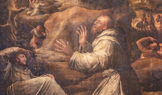 “Ci furono però alcuni dipinti che, pur solleticando l’appetito dei commissari, riuscirono a rimanere in città: tra questi il San Girolamo del Quercino e i due capolavori che Giorgio Vasari aveva lasciato a Rimini nel lontano 1547. Prima tra tutte l’Adorazione dei Magi presso l’abazia olivetana sul colle di Covignano. In qualità di complesso religioso, essa fu tra le prime chiese a essere soppressa, precisamente nel 1797. Successivamente, nel 1801, ad essa si concentrò la chiesa parrocchiale di San Fortunato. […] Nel 1809 la direzione generale del demanio richiese la verifica dei titoli di proprietà di molte opere nel dipartimento del Rubicone. […] In un documento dattiloscritto, conservato nella biblioteca Gambalunga di Rimini si può notare che, nel giugno del 1809, la pala del Vasari a San Fortunato risultava d’incerta collocazione e nulla si sapeva circa il suo stato di conservazione. Venne quindi incaricato un ricevitore demaniale a compiere personalmente alcune ricerche a Rimini. Gli esiti delle indagini furono riferiti in data 26 giugno e nella lettera si affermava che l’‘Epifania’ era collocata sull’altare maggiore della chiesa dei soppressi monaci olivetani e dunque apparteneva al demanio. In un’altra lettera, relativa sempre alla verifica dei titoli di proprietà, datata 16 novembre 1809, si registra una dicotomia sospetta: il ricevitore demaniale, nel suo precedente rapporto, affermava che il quadro era in ottimo stato conservativo ma un documento scritto dall’Arciprete della parrocchia, indirizzato al prefetto del demanio, informa circa il precario stato conservativo dell’opera. Essa infatti aveva sofferto molto e dunque non era in grado di sopportare il minimo spostamento. […] La soluzione si trova scritta nell’ultimo documento in cui viene citata la pala vasariana datato al 24 luglio 1810: essendo la chiesa diventata parrocchiale ed essendo essa allora sussistente, i beni in essa conservati non erano colpiti dal sovrano decreto. La tavola di Vasari restò sul colle di Covignano, là dove il pittore fiorentino l’aveva realizzata. […] L’altra opera finita nel mirino napoleonico era il San Francesco che riceve le stimmate, realizzata dal Vasari nel 1548 per la chiesa francescana della città.