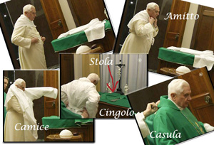 Il grido di fede paolino «non sono più io che vivo, ma Cristo vive in me» (Gal 2,20) aiuta a comprendere il senso delle vesti liturgiche, che si distinguono dalle vesti comuni maschili. Il loro scopo è manifestare esteriormente il compito proprio di ogni ministro nella celebrazione dell’Eucaristia (Ordo Generale del Messale Romano, 335): dal papa all’ultimo chierichetto.
