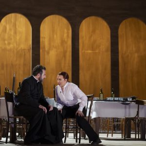 Il tenore peruviano Iván Ayón Rivas ha affrontato il personaggio di Tebaldo, rivale di Romeo, con voce sicura, emissione facile, squillante, a tratti persino spavalda in relazione a un innamorato che resta un perdente. Il libretto prevede due soli altri personaggi. Lorenzo – che in questo spettacolo, come pure in molti altri, indossa l’abito talare, ma nominalmente sarebbe un medico – era interpretato da Nicola Ulivieri: nonostante un certo logoramento vocale, ha saputo disegnare una figura paterna, cui Giulietta si affida in mancanza di ogni dialogo con il genitore biologico. Il vero padre della protagonista, Capellio, era invece incarnato da Alessio Cacciamani: inflessibile e anaffettivo, come vuole il suo ruolo, sostenuto da una notevole solidità di emissione.